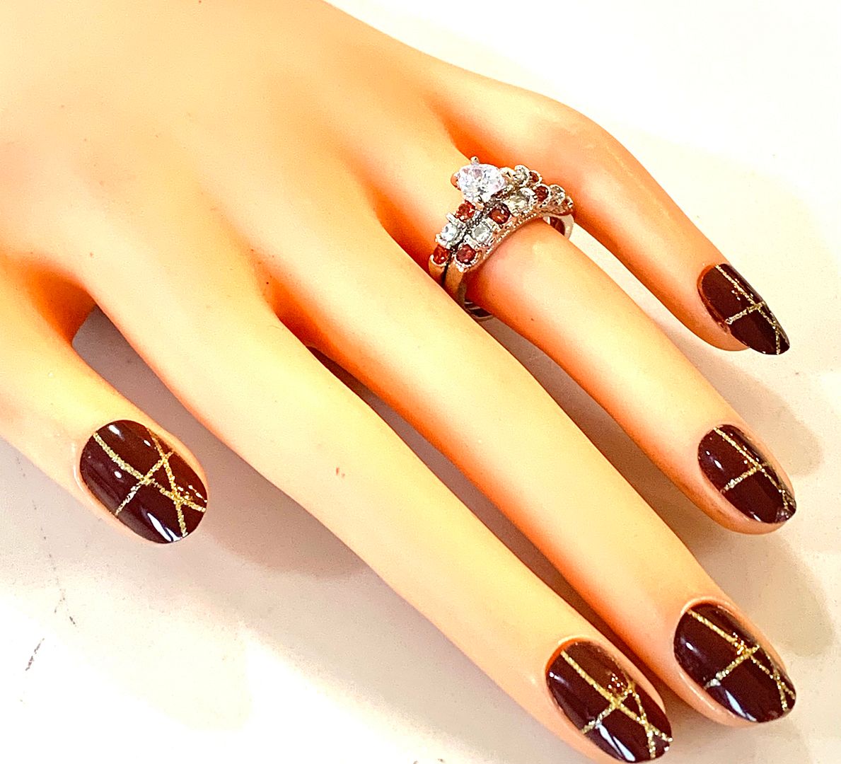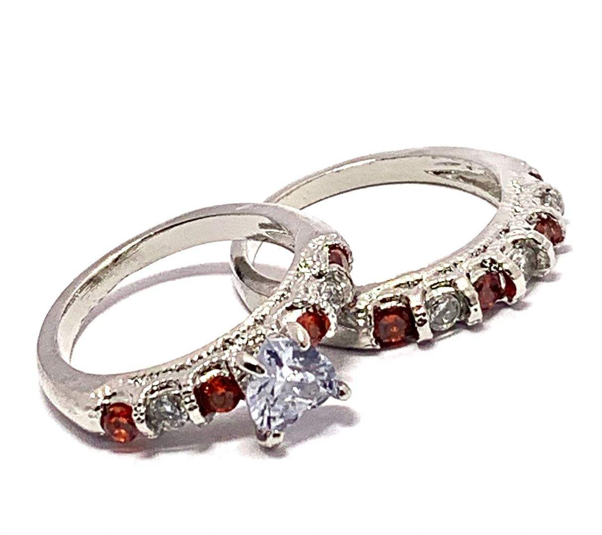 3.00ctw Garnet & Cubic Zirconia 18k White Gold Overlay Ring Set