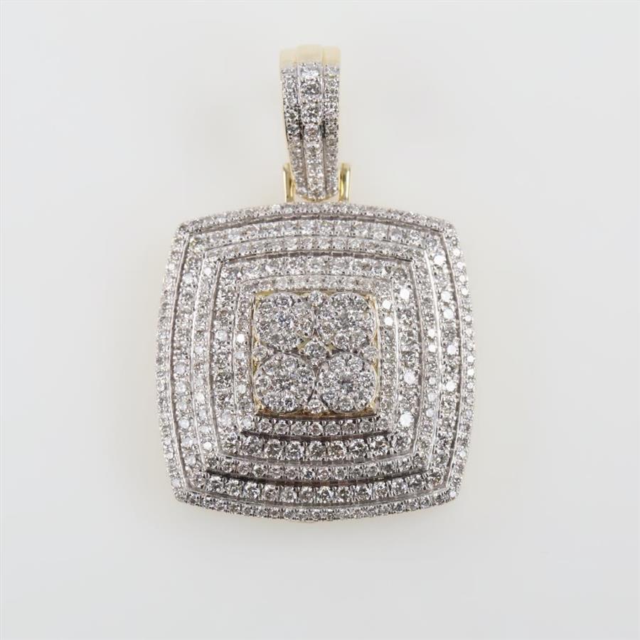 3.68ctTW Diamond 14kt Gold Two-tone Square Pendant-Evaluated By Our Certified Gemologist-AGS/GIA
