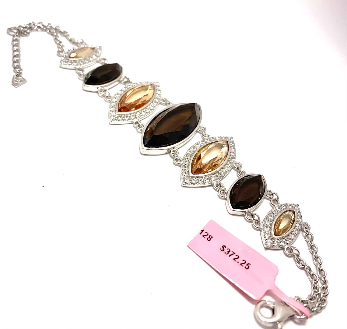 $372 18k Gold & .925 Sterling Silver 125.00ctw Chocolate. Champagne & White Topaz Large Bracelet