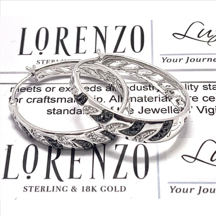 $375 COLORE SG Lorenzo 18K WG & .925 Sterling Silver 0.32ctw Genuine White & Black Zircone Hoop Earrings
