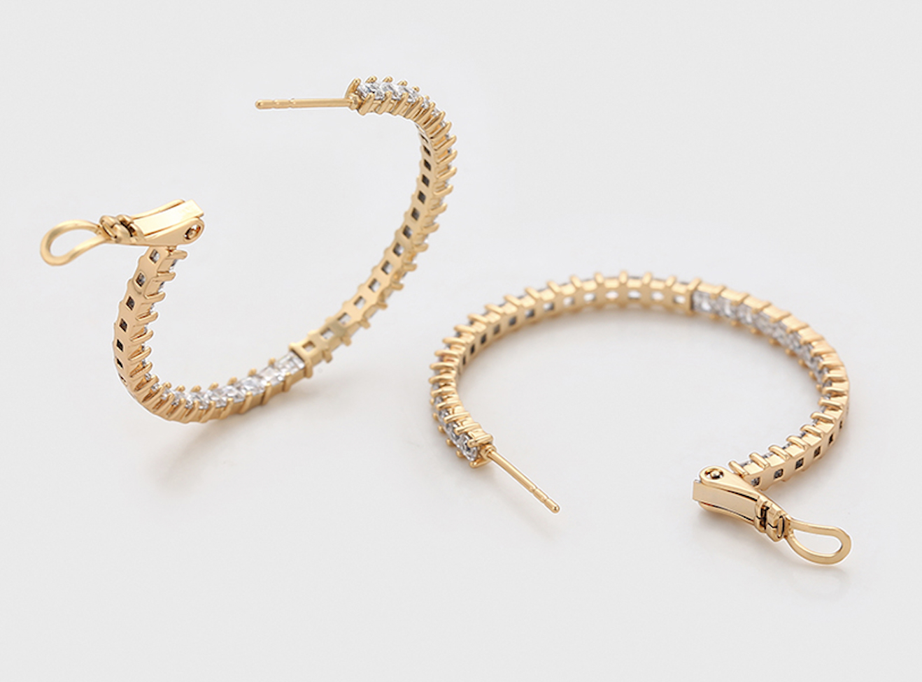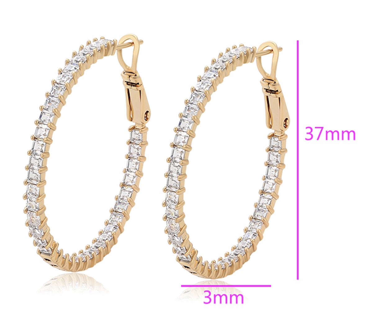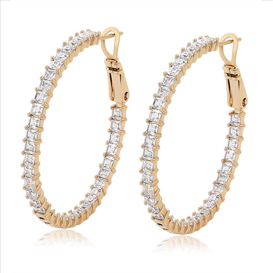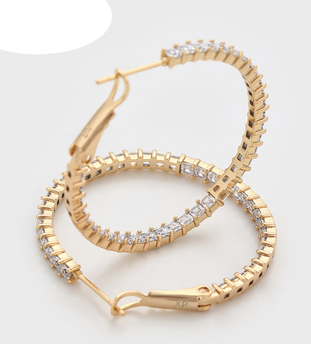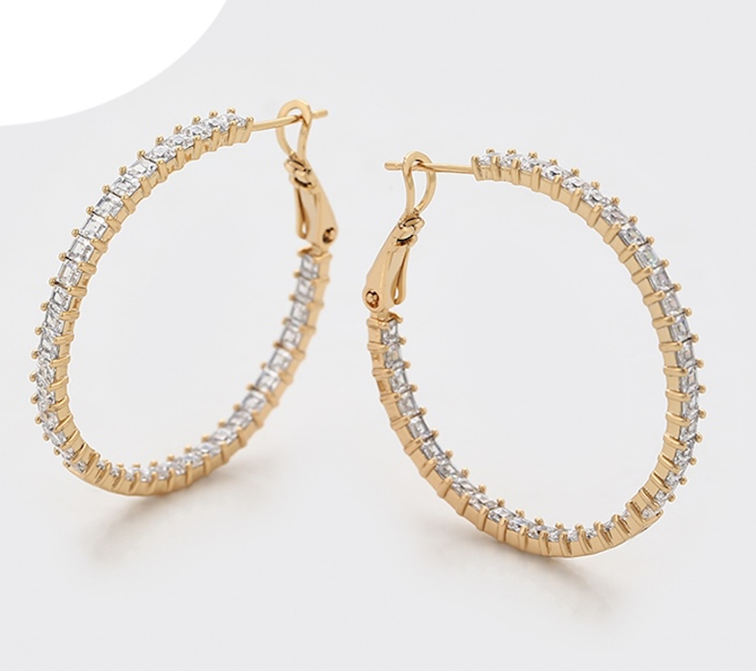 38mm Simulated Diamond 14K Gold Plated Hoop Earrings