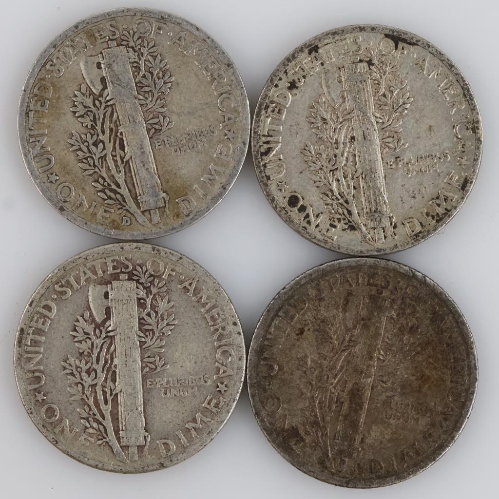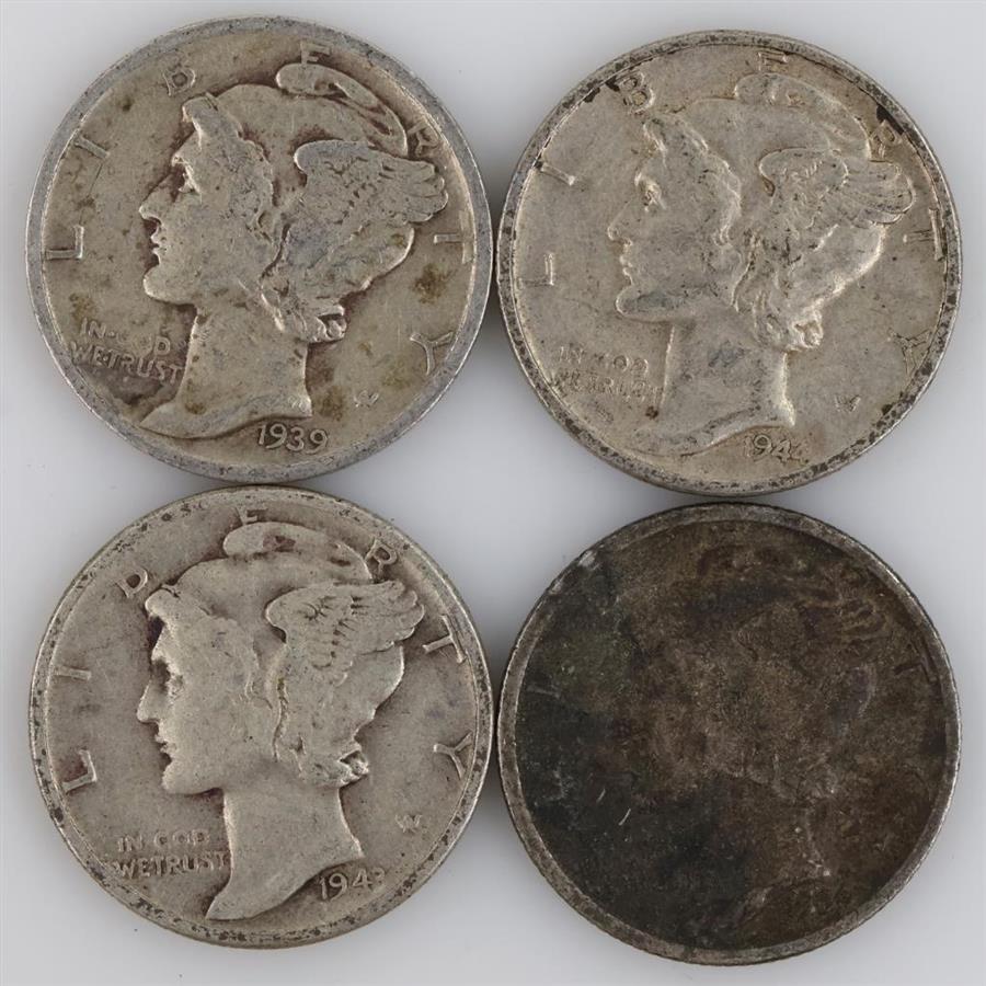 4 US Mercury Silver Dimes