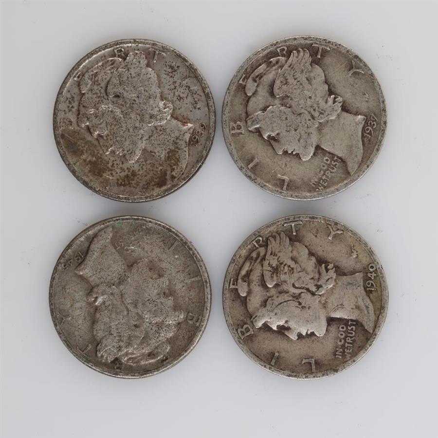 4 US Mercury Silver Dimes