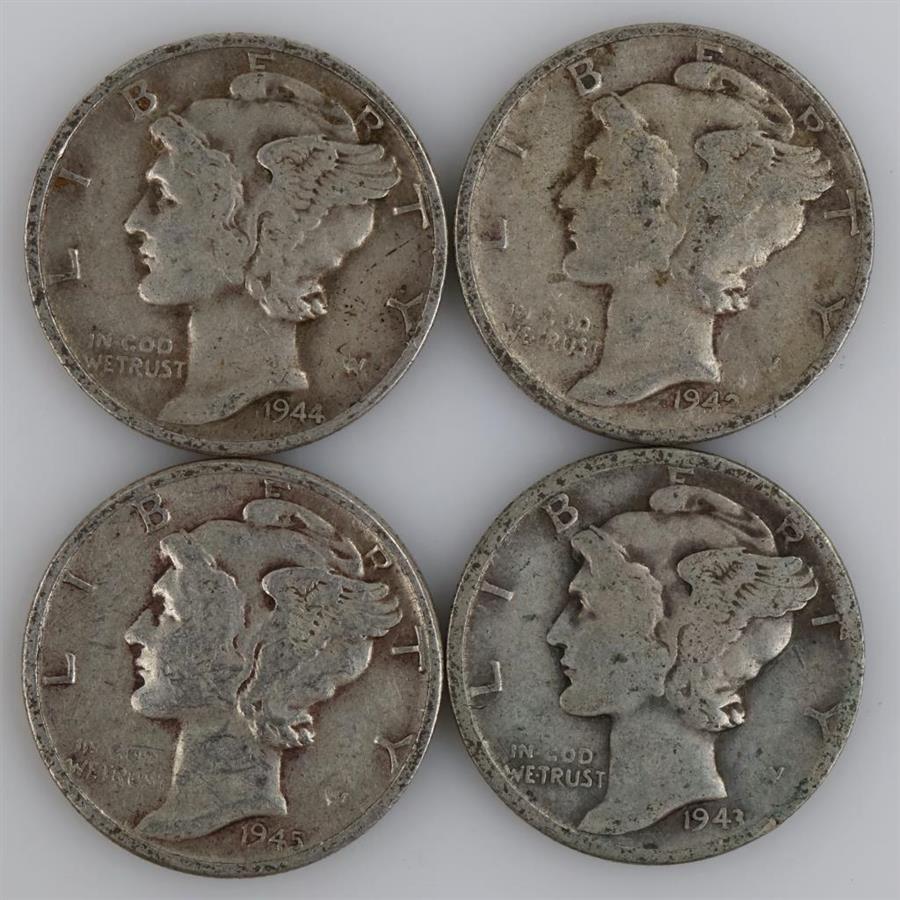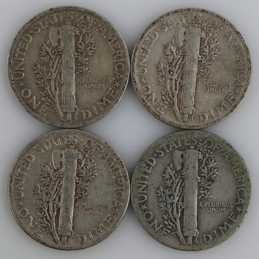 4 US Mercury Silver Dimes