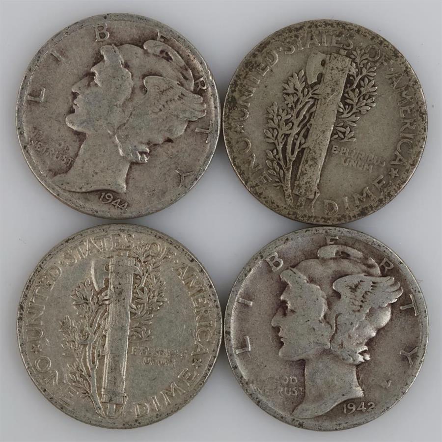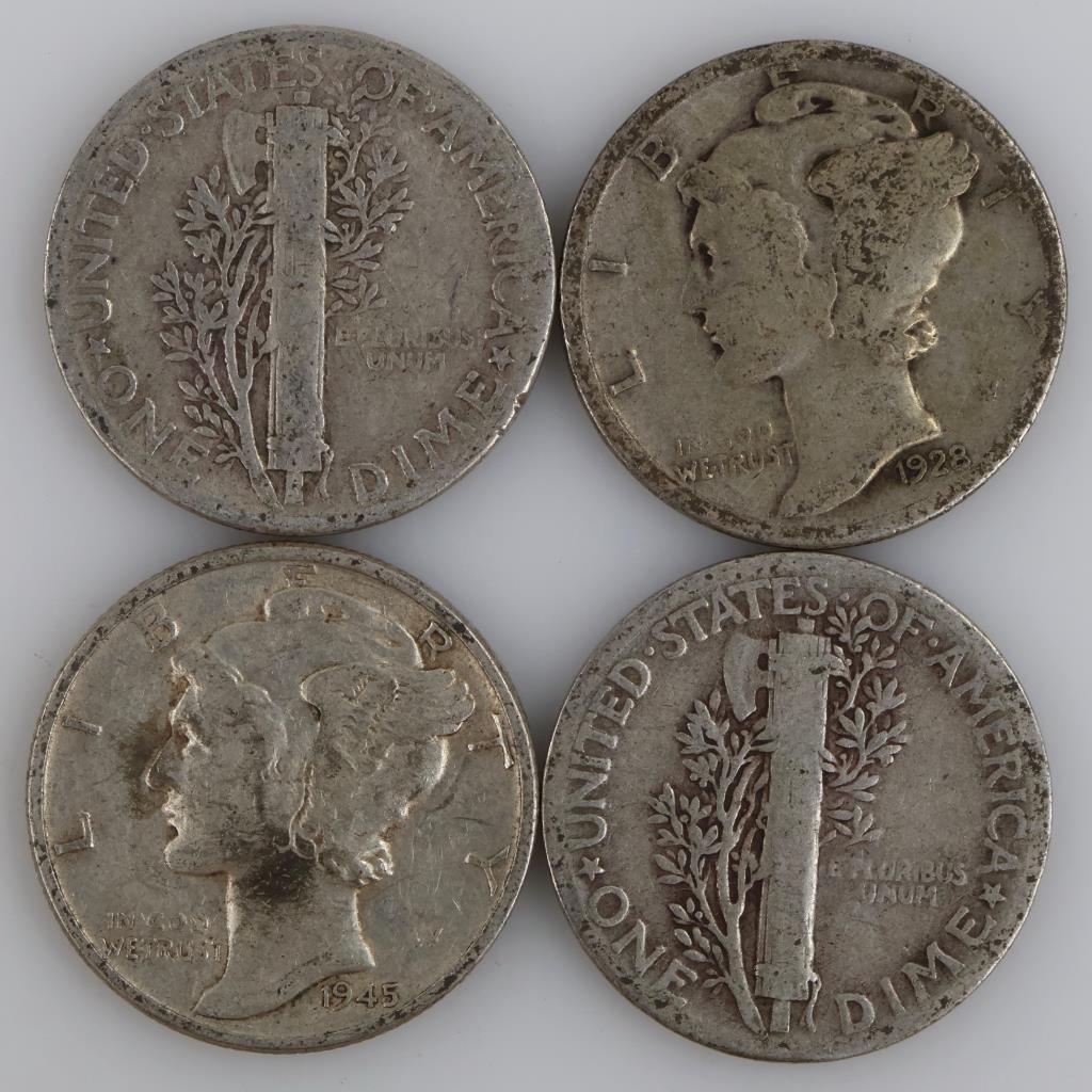 4 US Mercury Silver Dimes
