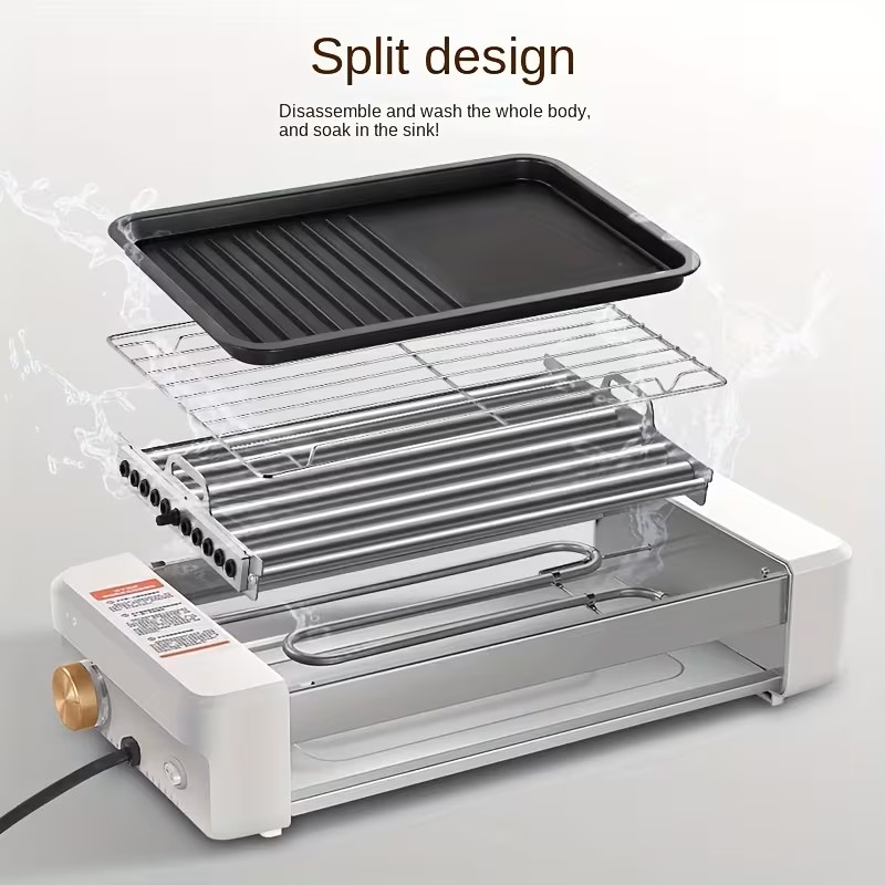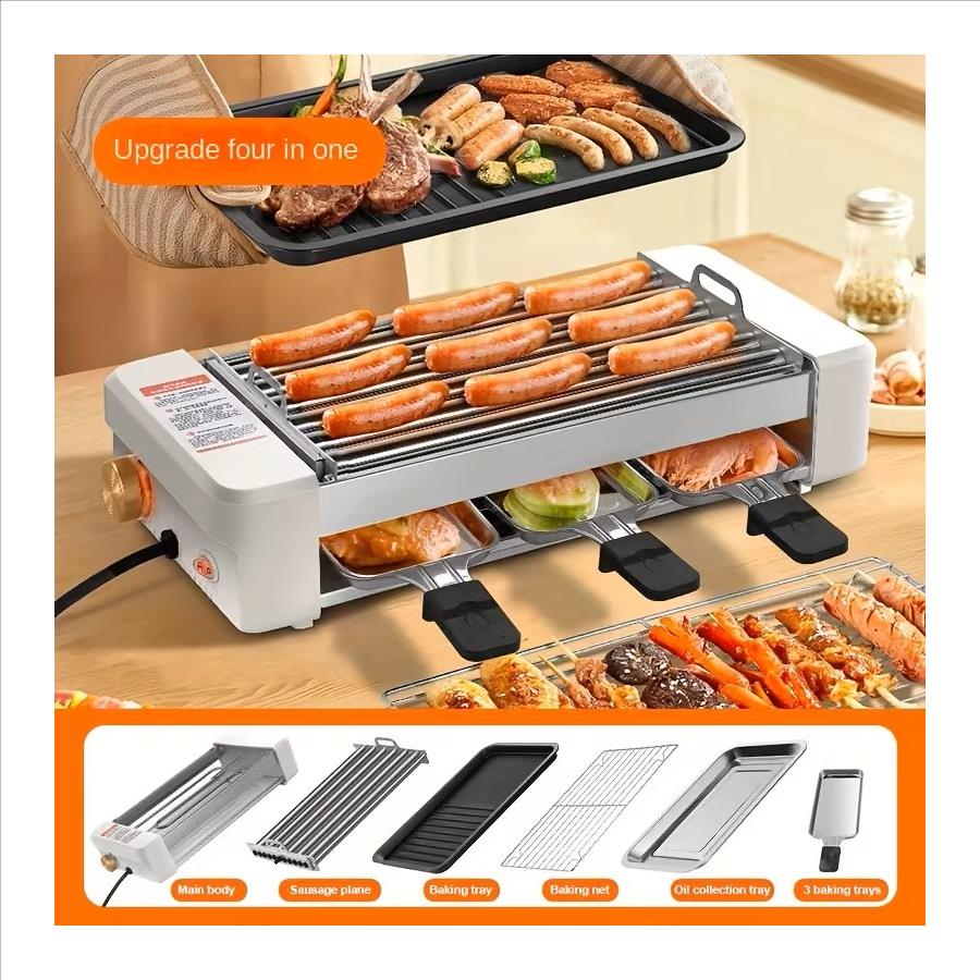 4-in-1 Multi-functional Sausage Grill, With Three-hand Dish And Silicone Oil Brush, Silicone Grill Holder, Non-stick Pan, Countertop, Adjustable Temperature, Detachable Panel, Easy To Clean, Suitable For Kitchens And Dormitories