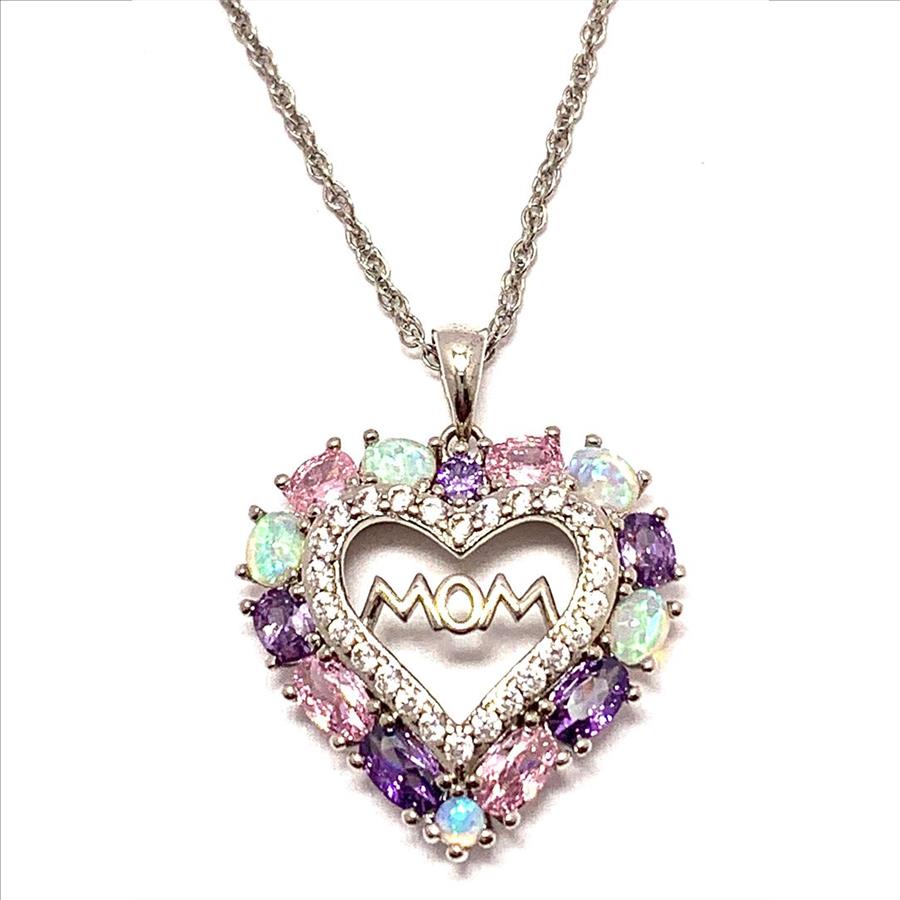5.50ctw Multicolor Stones & Diamonique Diamond Heart Necklace