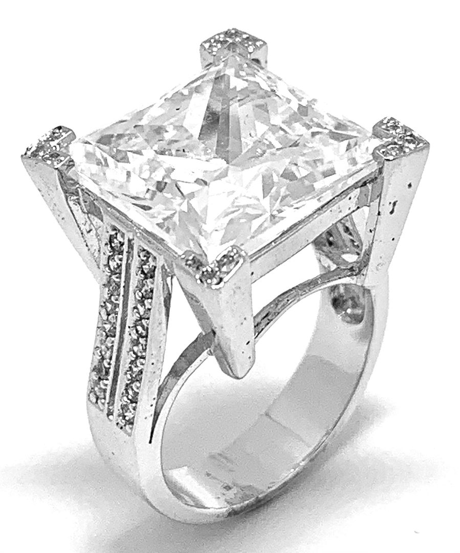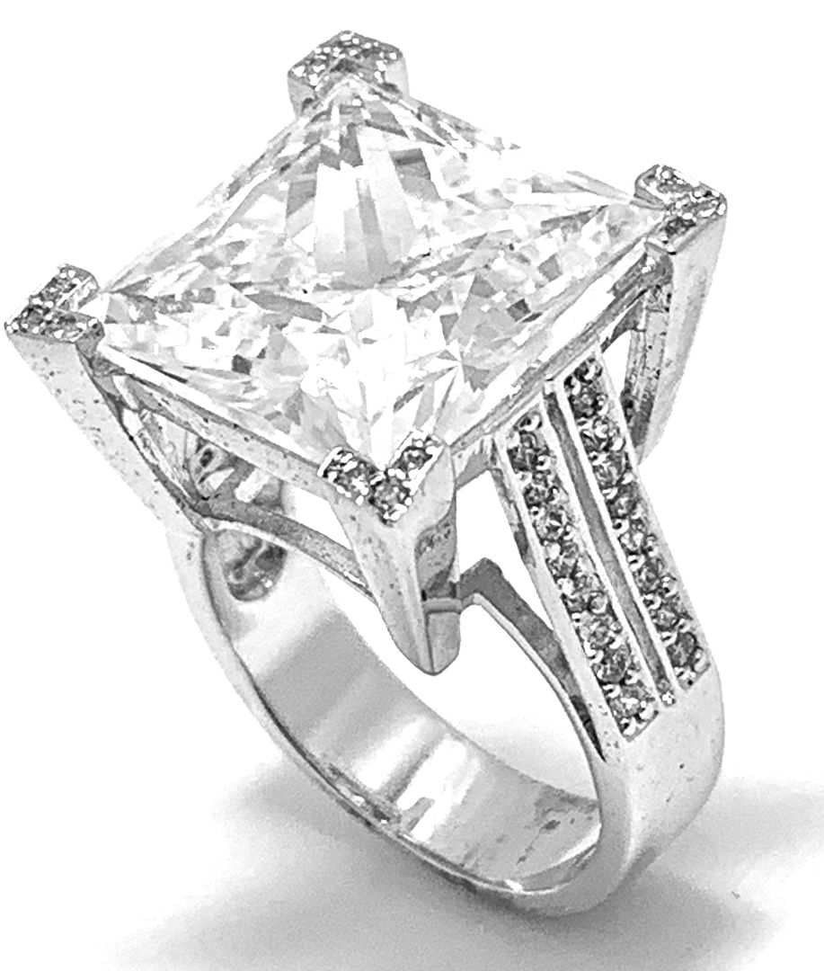 $575 Retail 23.00ctw Moissanite Engagement Ring in 18k WG & .925 Sterling Silver
