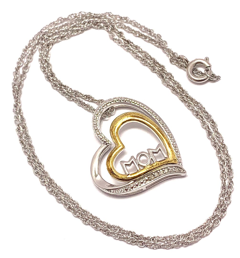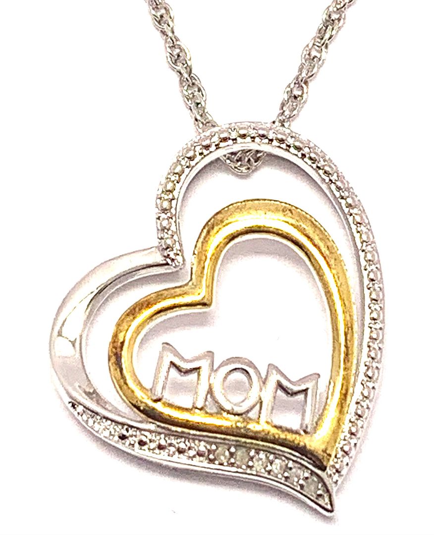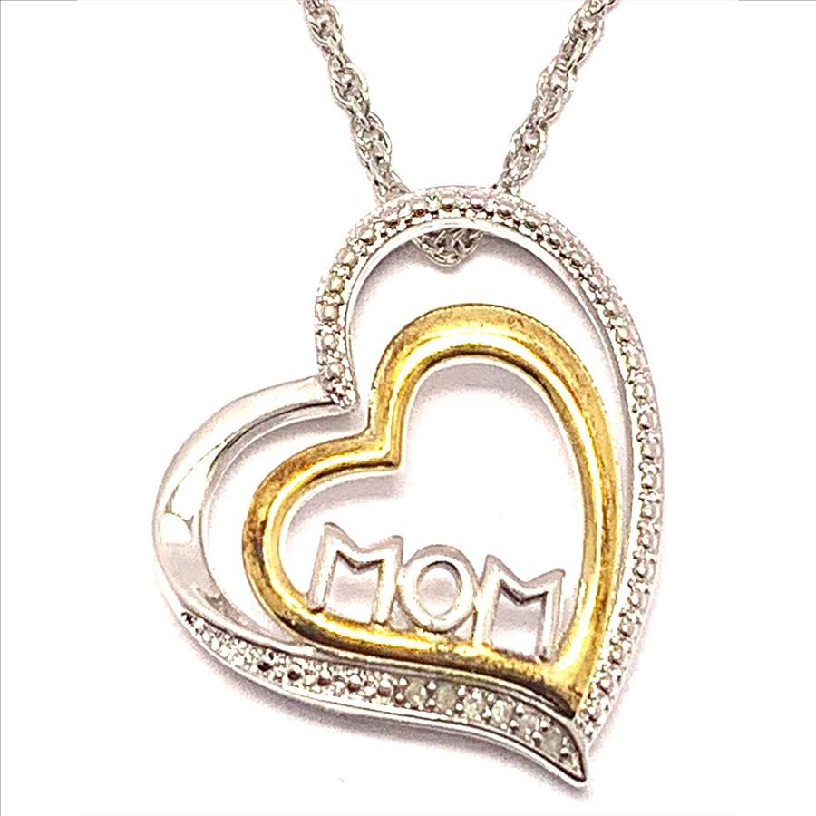 6 Genuine Diamonds Two Tone MOM Heart Necklace
