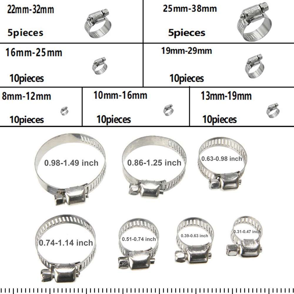 Fit Hose Diameter: 8-12mm,10-16mm, 13-19mm, 16-25mm, 19-29mm, 22-32mm, 25-38mm