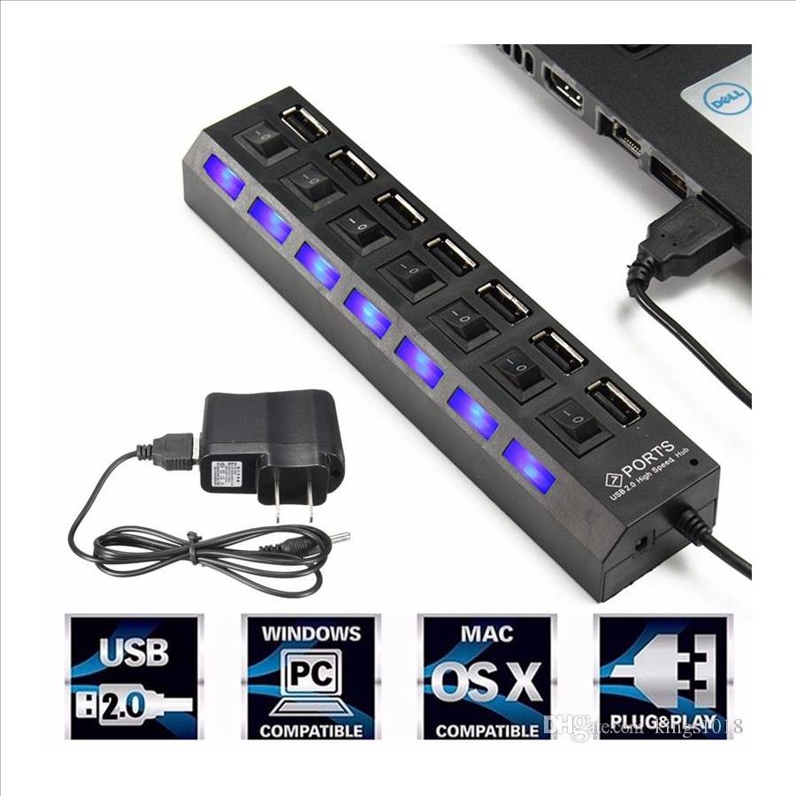 7 Ports LED USB Hub Splitter ON/OFF Switch Adapter Cable Computer Hub USB High Speed USB 2.0 Power Hub For Laptop PC Notebook