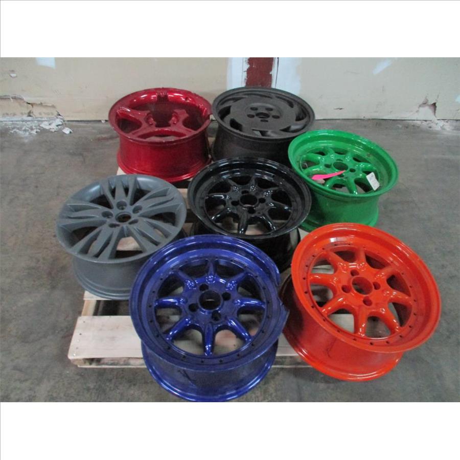 Get a great deal with this online auction presented by PropertyRoom.com on behalf of a law enforcement or public agency client. - 7 assorted rims, 16", 1 black 4 lugs @100, 1 grey 5 lugs @4.75, 1 grey 5 lugs @110, 1 orange 4 lugs @180, 1 blue 4 lugs @ 180, 1 red 4 lugs @180, 1 green 4 lugs @100, they range from 4 to 5 lugs.