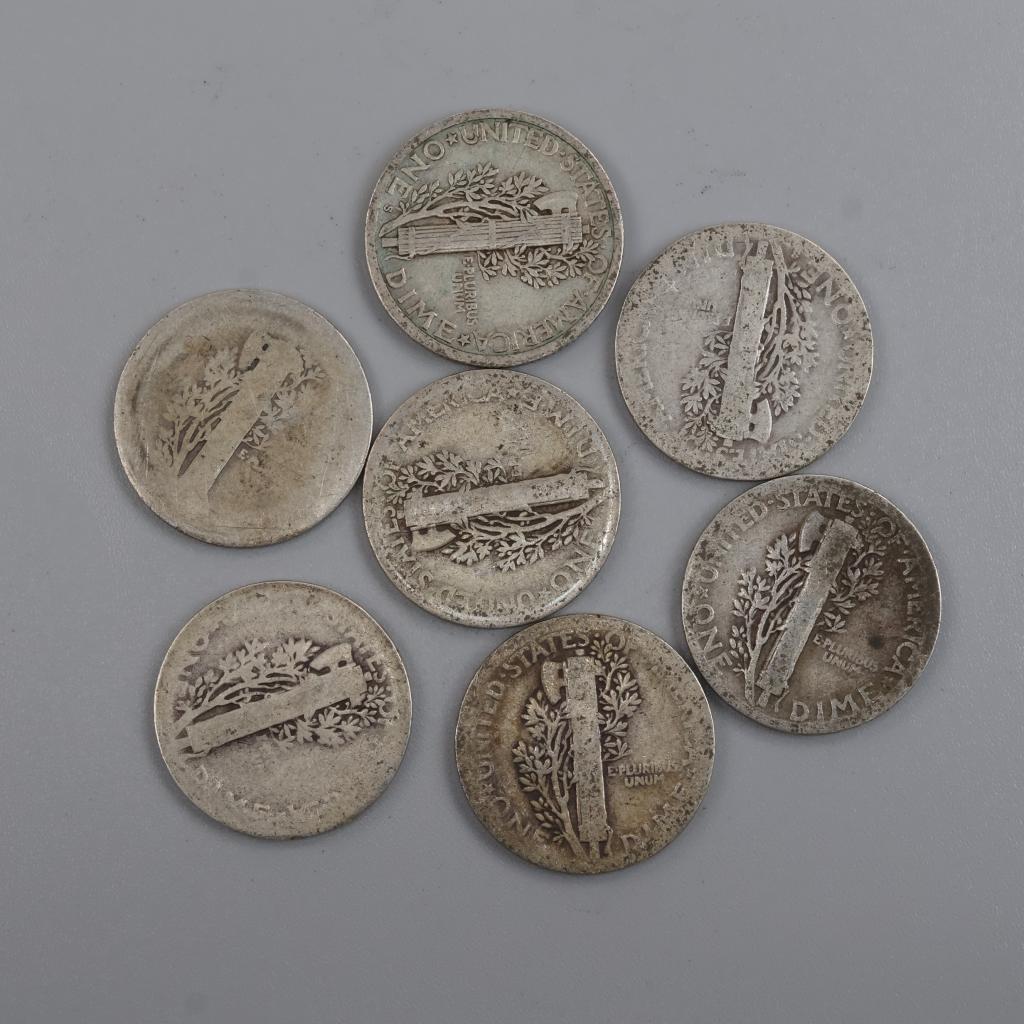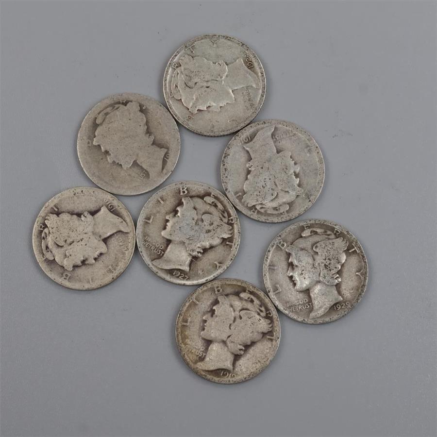 7 US Mercury Silver Dimes