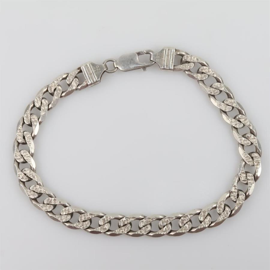 .800 Silver Textured Curb Chain Bracelet