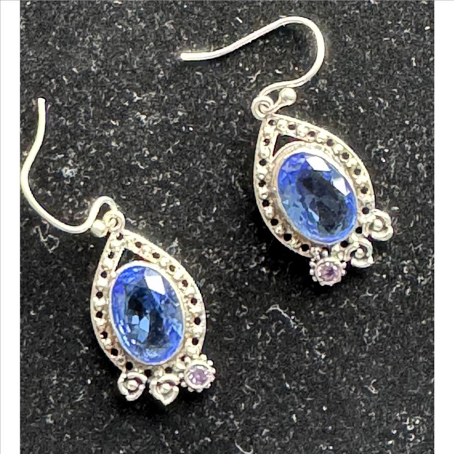 .925 STAMPED STERLING SILVER EARRINGS, STYLISH TANZANITE DROP DANGLING EARRINGS