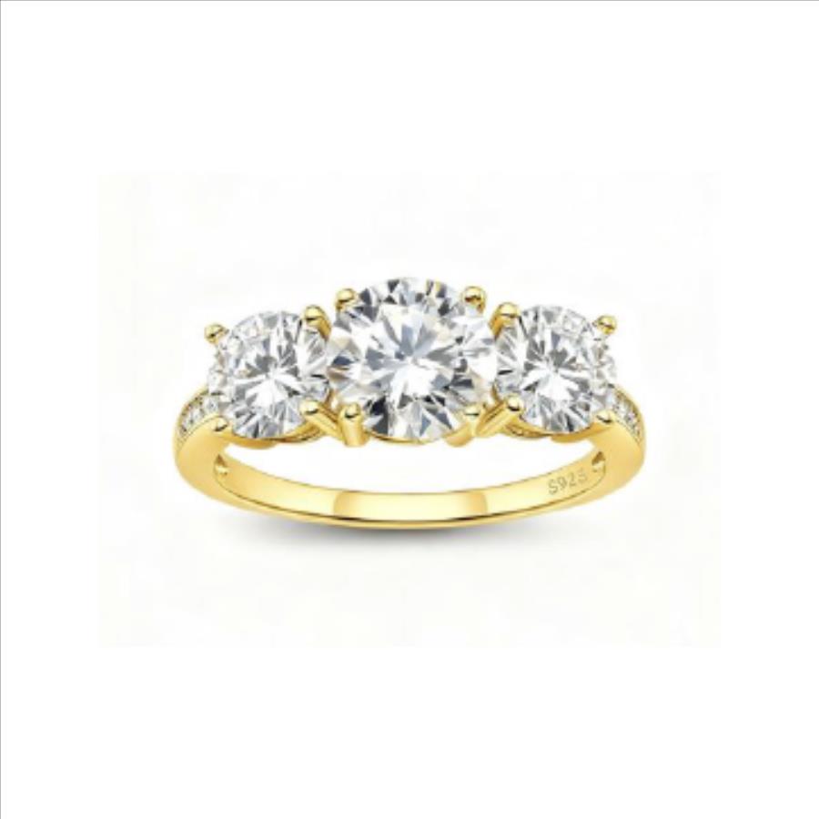 925 Sterling Silver 1.0ct Moissanite 18K Gld Plated Trinity Ring