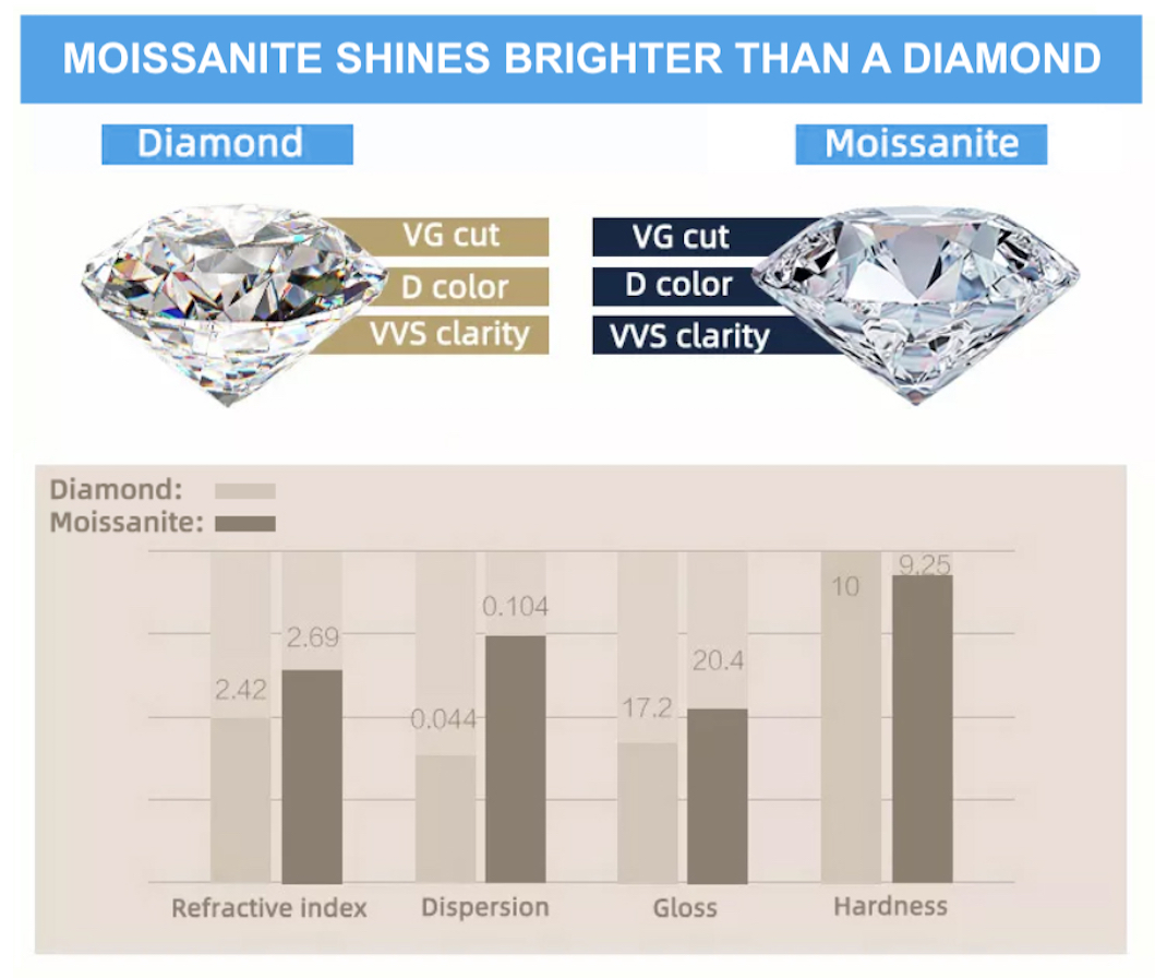 Discover the Magic of Moissanite—a Gem born from the Stars and found in Meteorites. It's a true Marvel, Ranking at 9.25 on the Mohs Scale of Hardness, just shy of a Diamond's Perfect 10. Here's the difference, Moissanite Outshines Diamonds in both Fire and Brilliance, Boasting an even Higher Refractive index that Delivers a Jaw-Dropping Experience. Now Couples all over the World choose Moissanite to mark their Love with an Ethical, Affordable, Beautiful Gem that will last Forever.