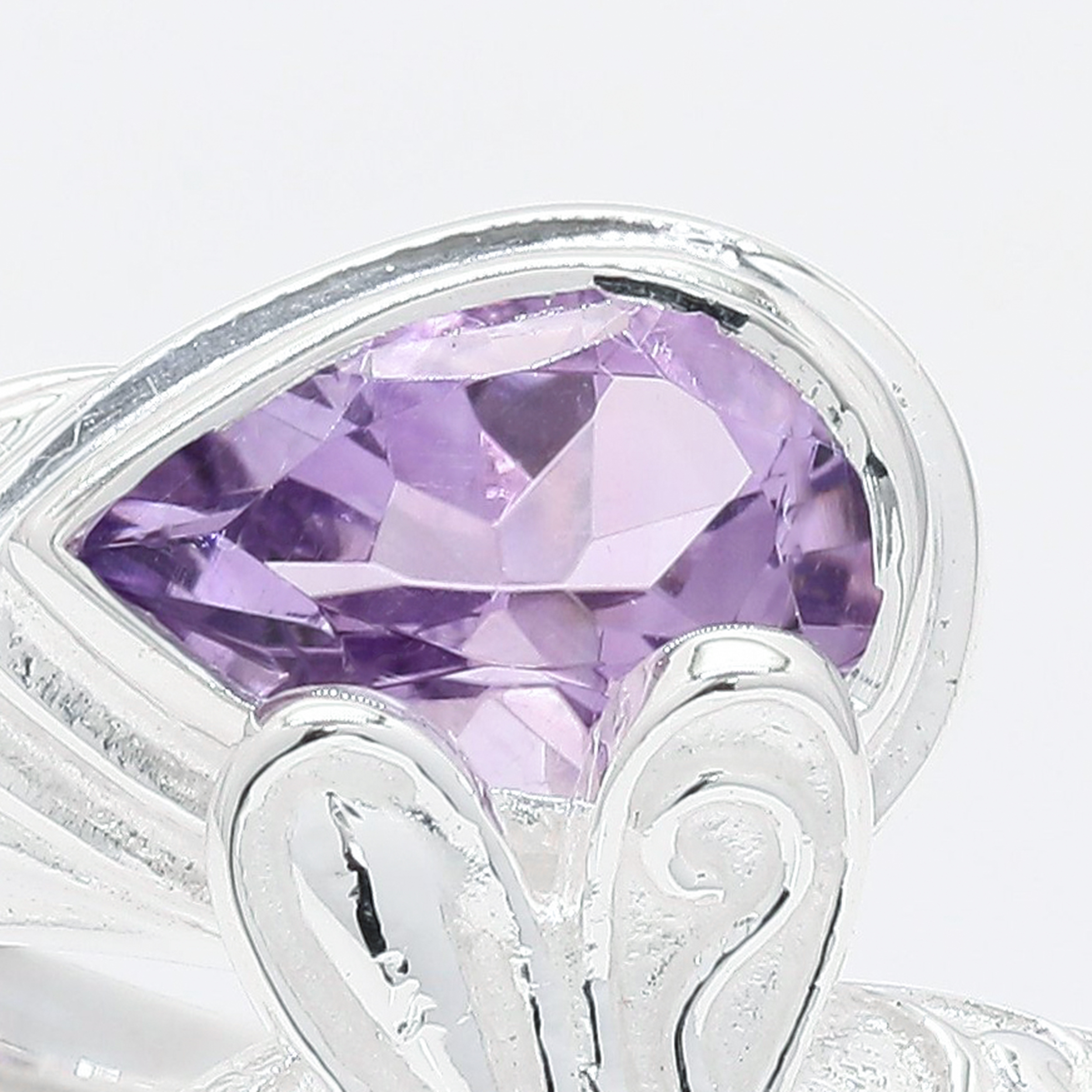 925 Sterling Silver 1.19 Ct Pear Amethyst Ring 7 US Ring Size