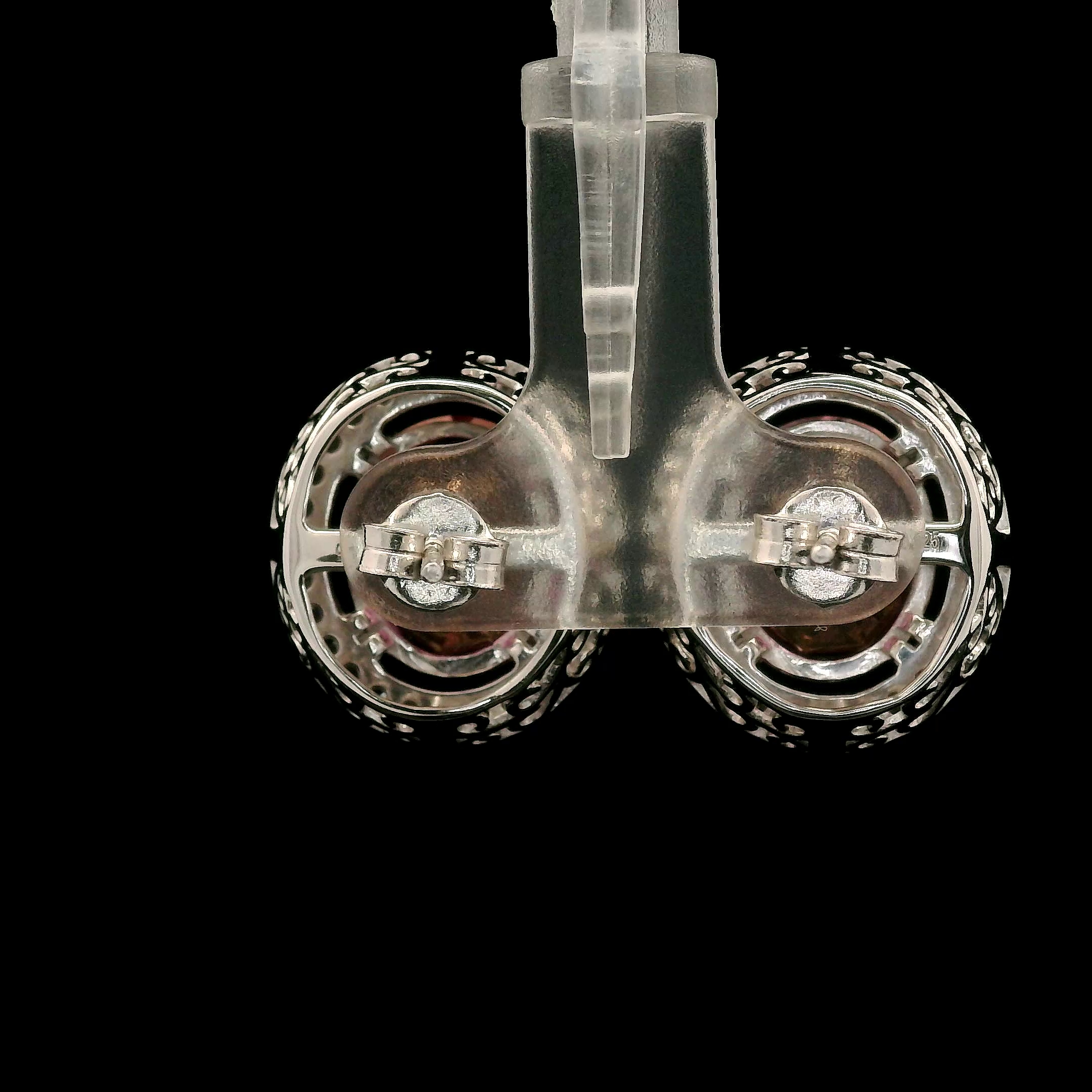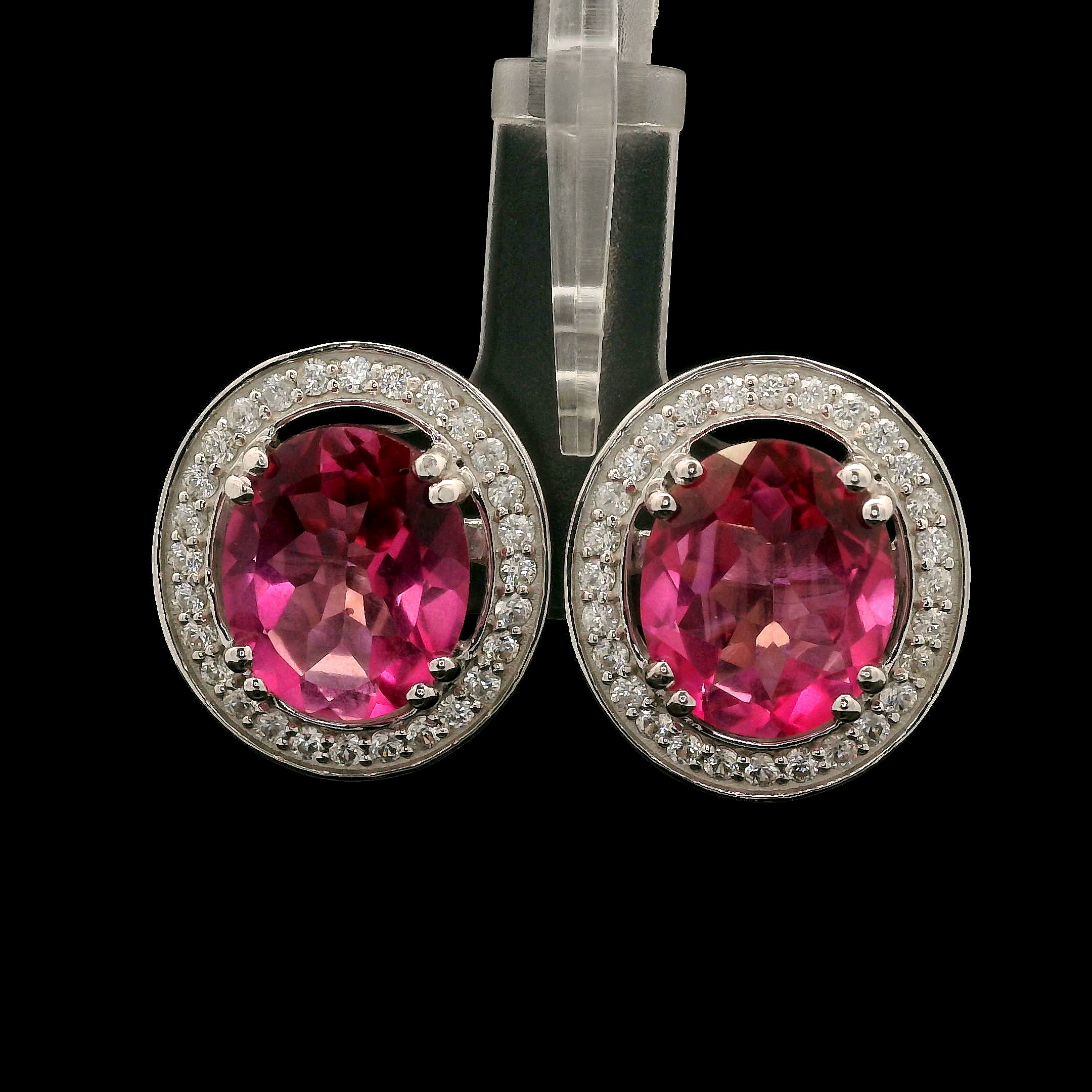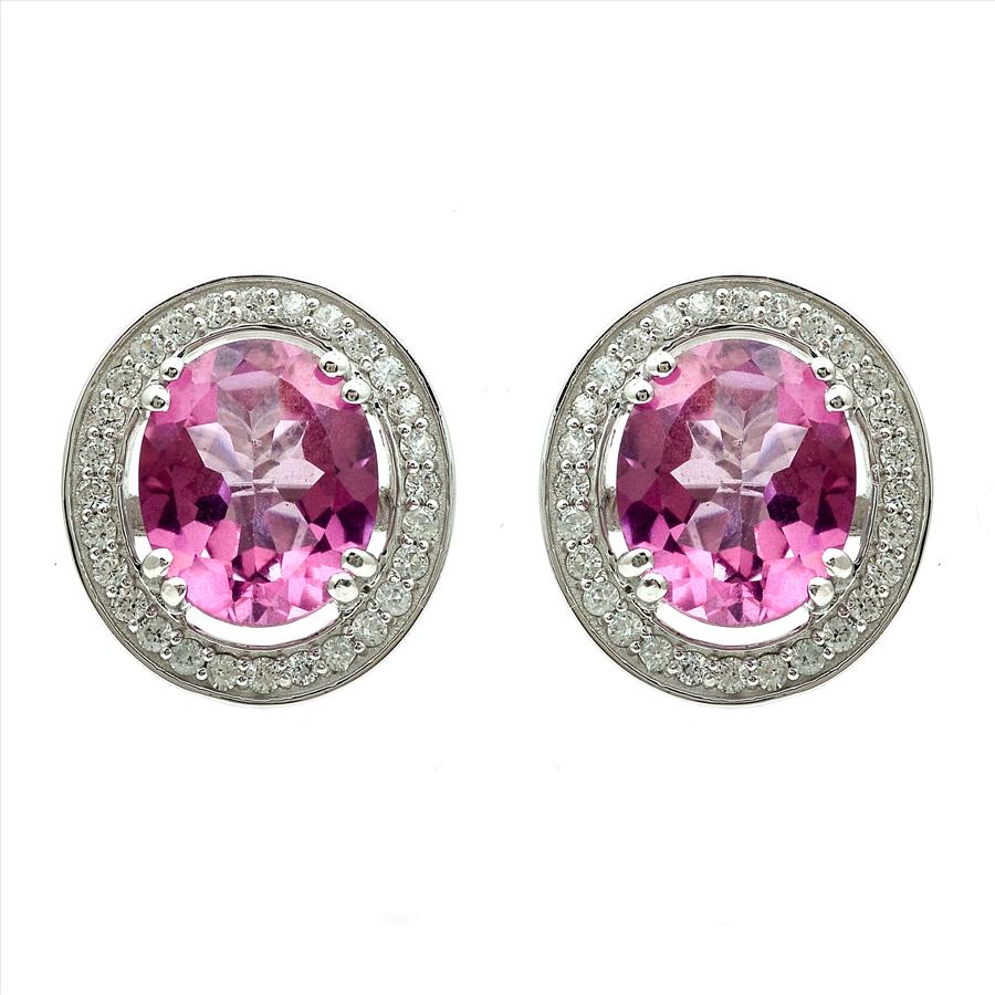 925 Sterling Silver 13.23 Ct Oval Pink Topaz White Zircon Earrings