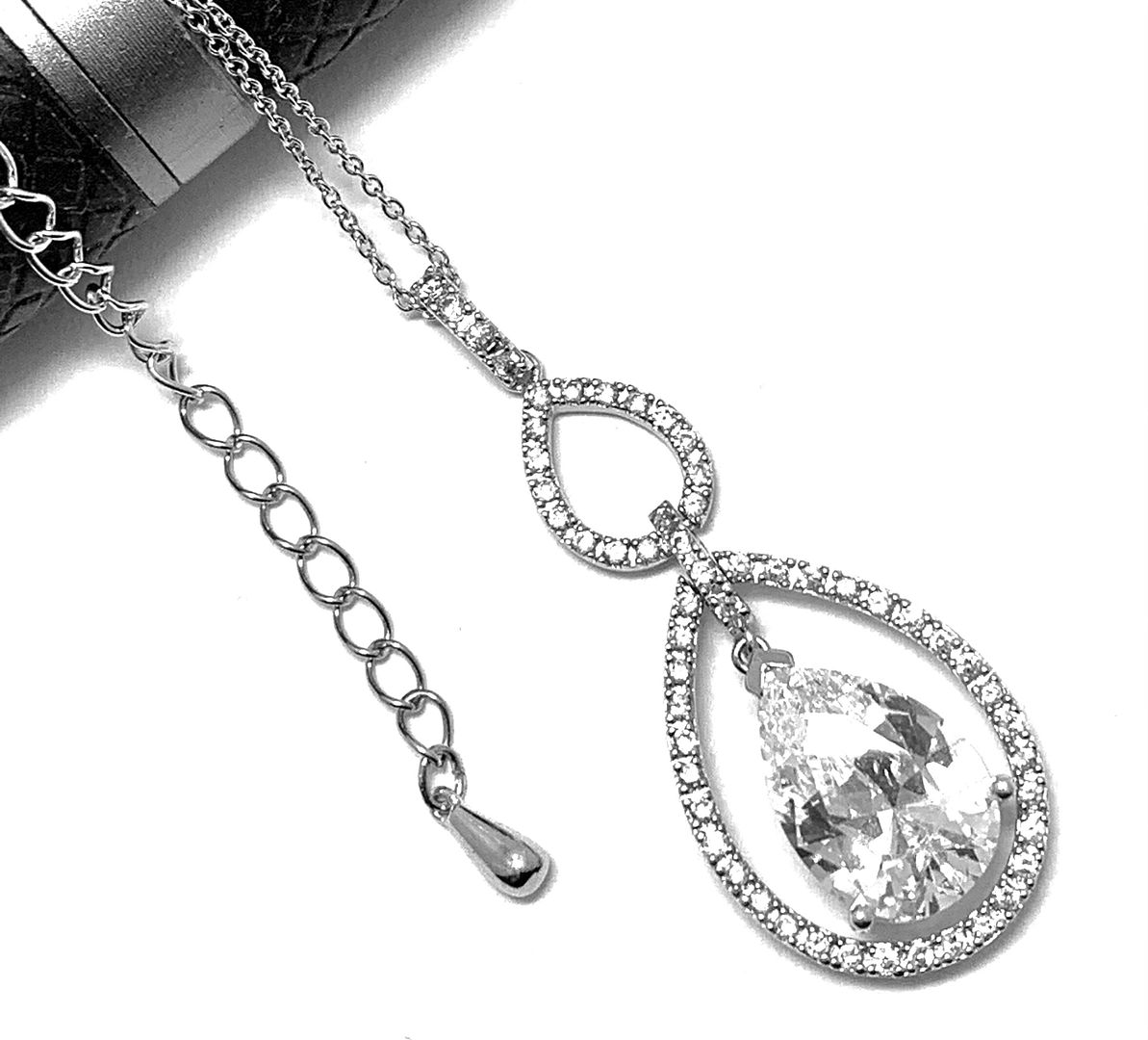 .925 Sterling Silver &14k White Gold 9.75ctw Diamonique Diamond Necklace