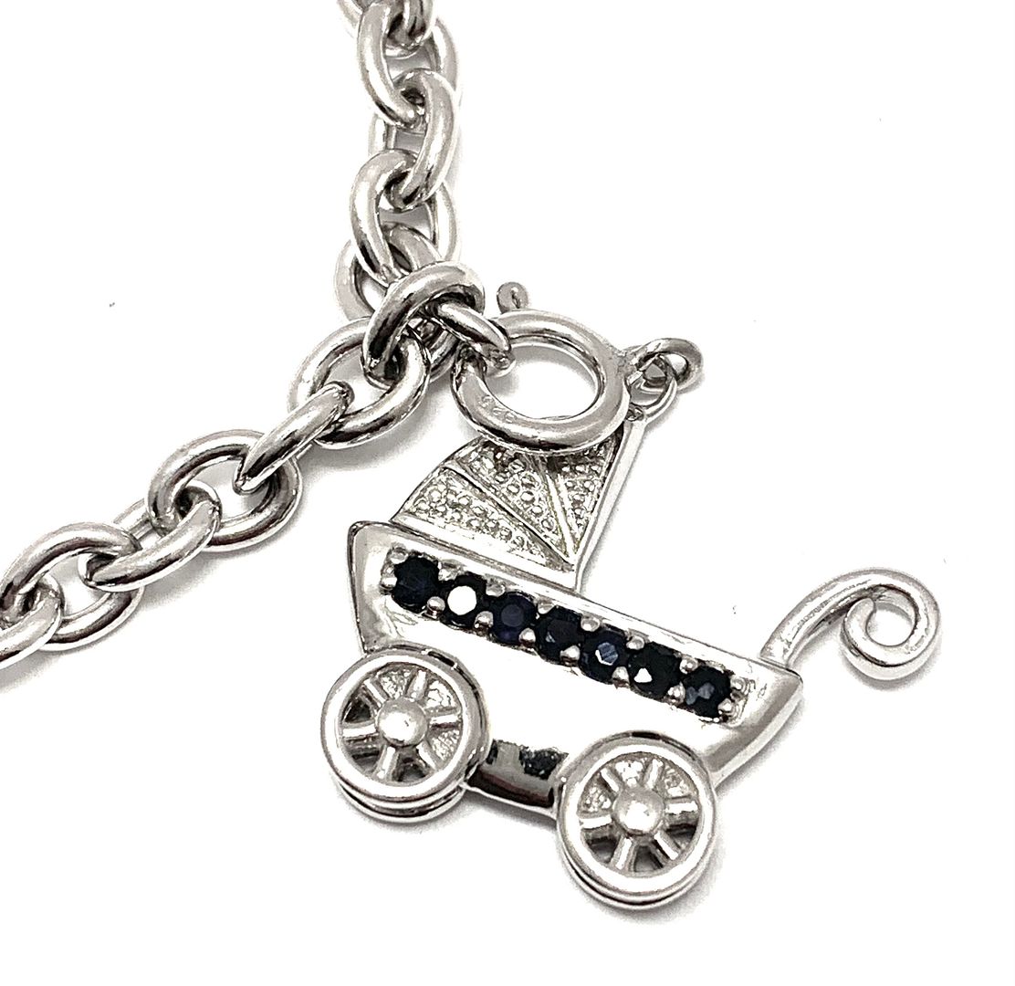 .925 Sterling Silver 18k over Genuine Diamonds & Genuine Sapphire Charm Bracelet