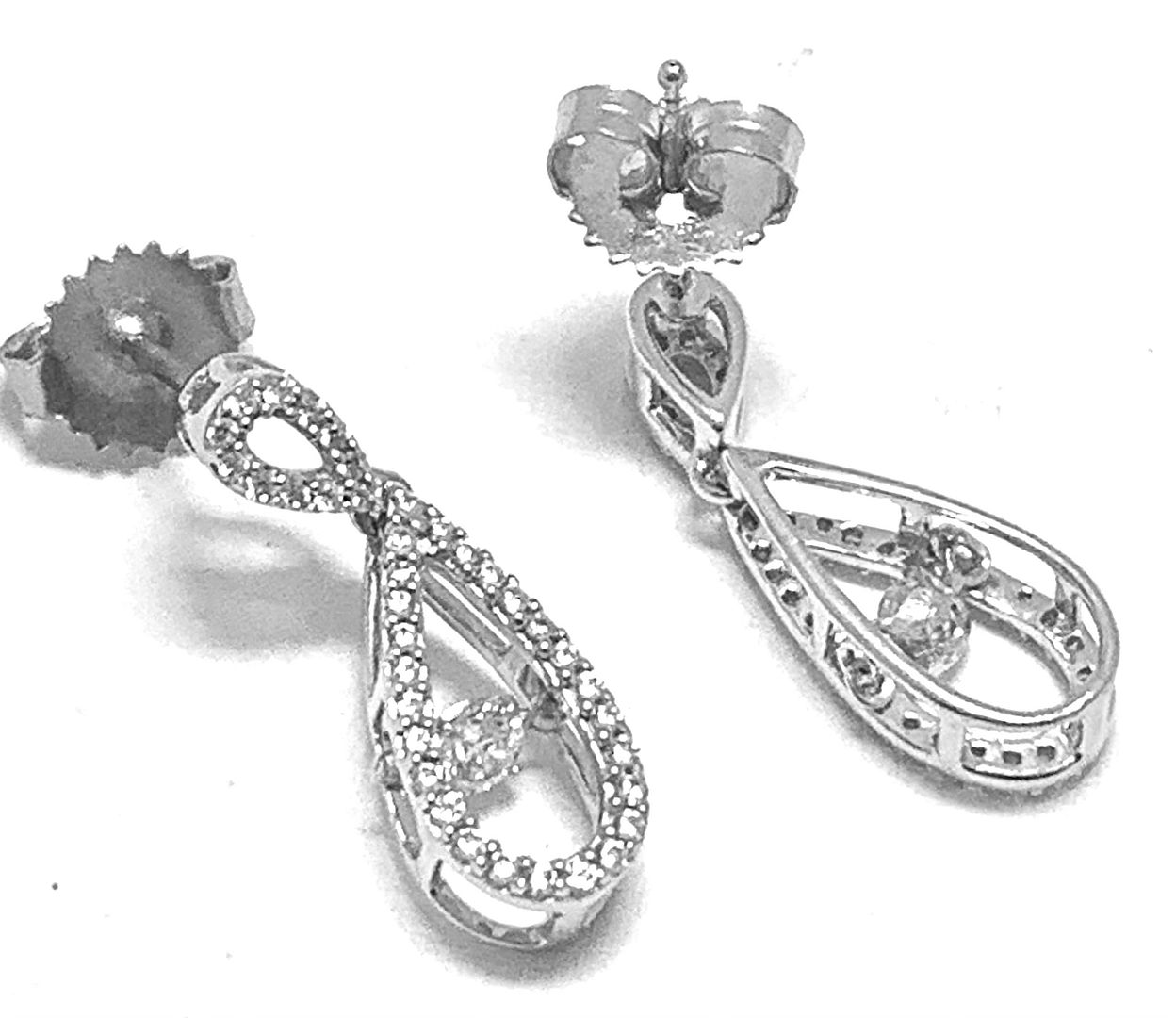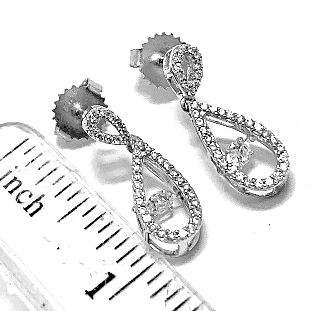 .925 Sterling Silver & 18k White Gold Dancing Diamond Design Earrings