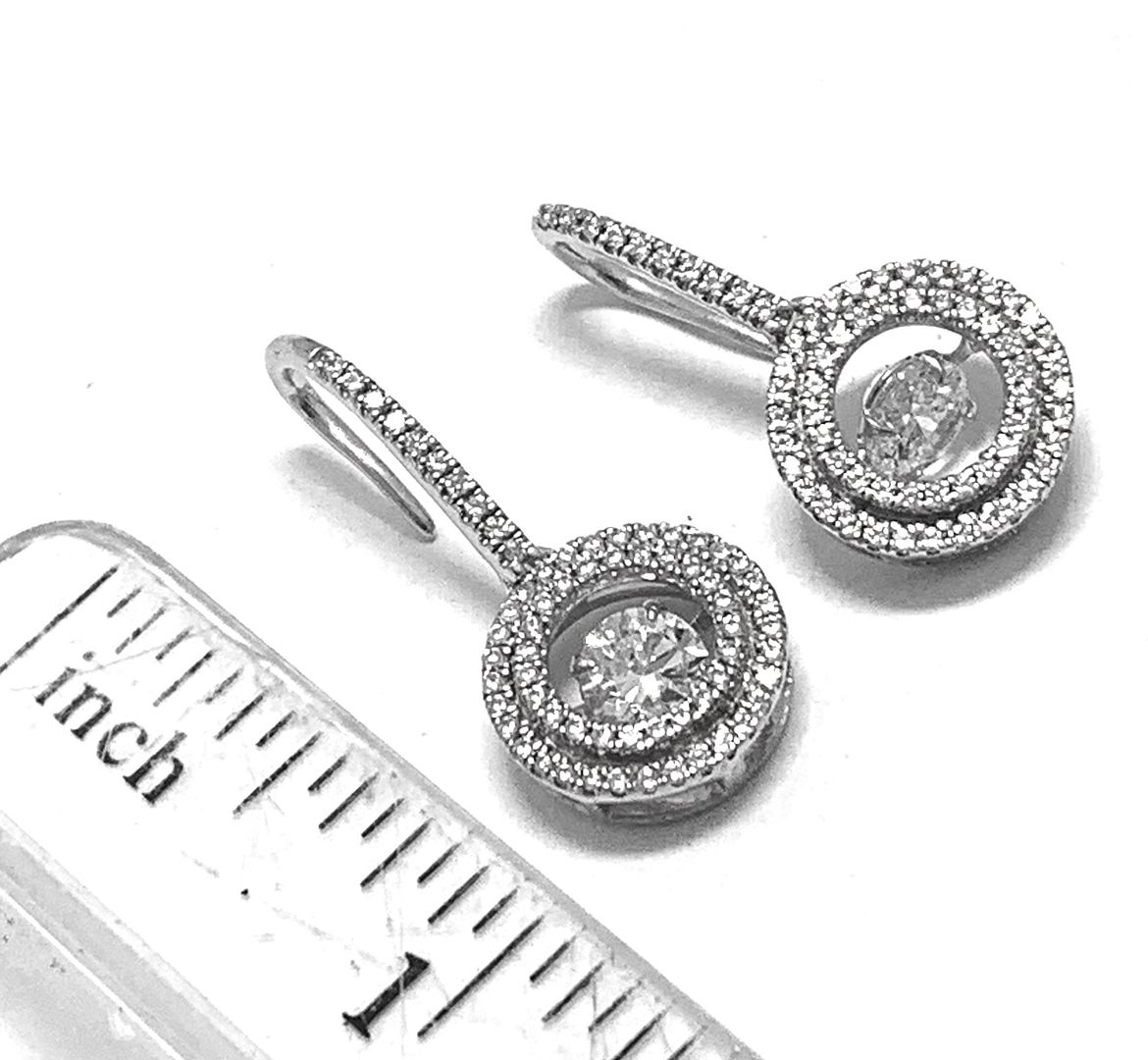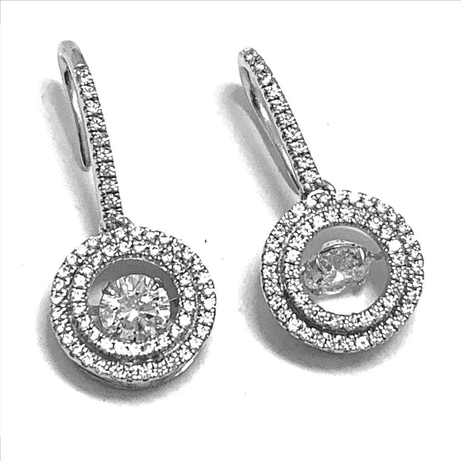 .925 Sterling Silver & 18k White Gold Dancing Diamond Design Earrings.