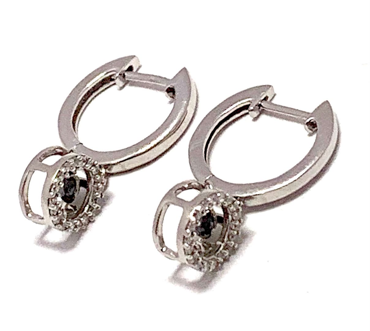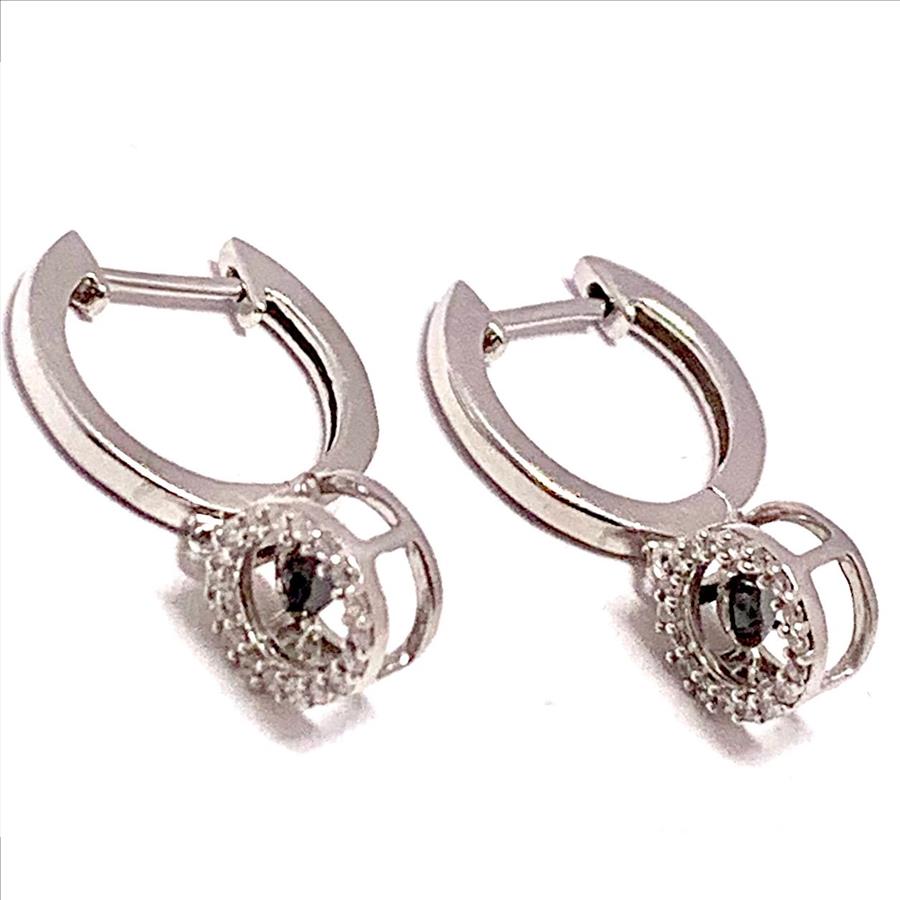 .925 Sterling Silver & 18k White Gold Dancing Diamond Design Earrings.