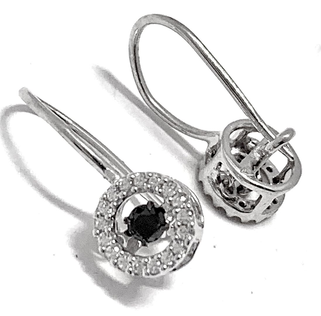 .925 Sterling Silver & 18k White Gold Dancing Diamond Design Earrings