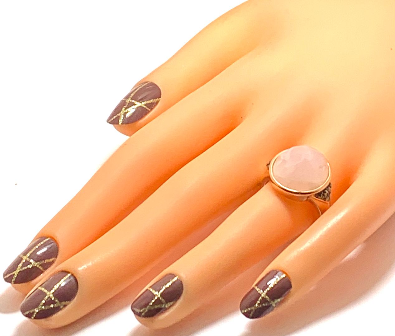 .925 Sterling Silver & 18k Yellow Gold 10.15ctw Genuine Pink Agat & Marcasite Ring