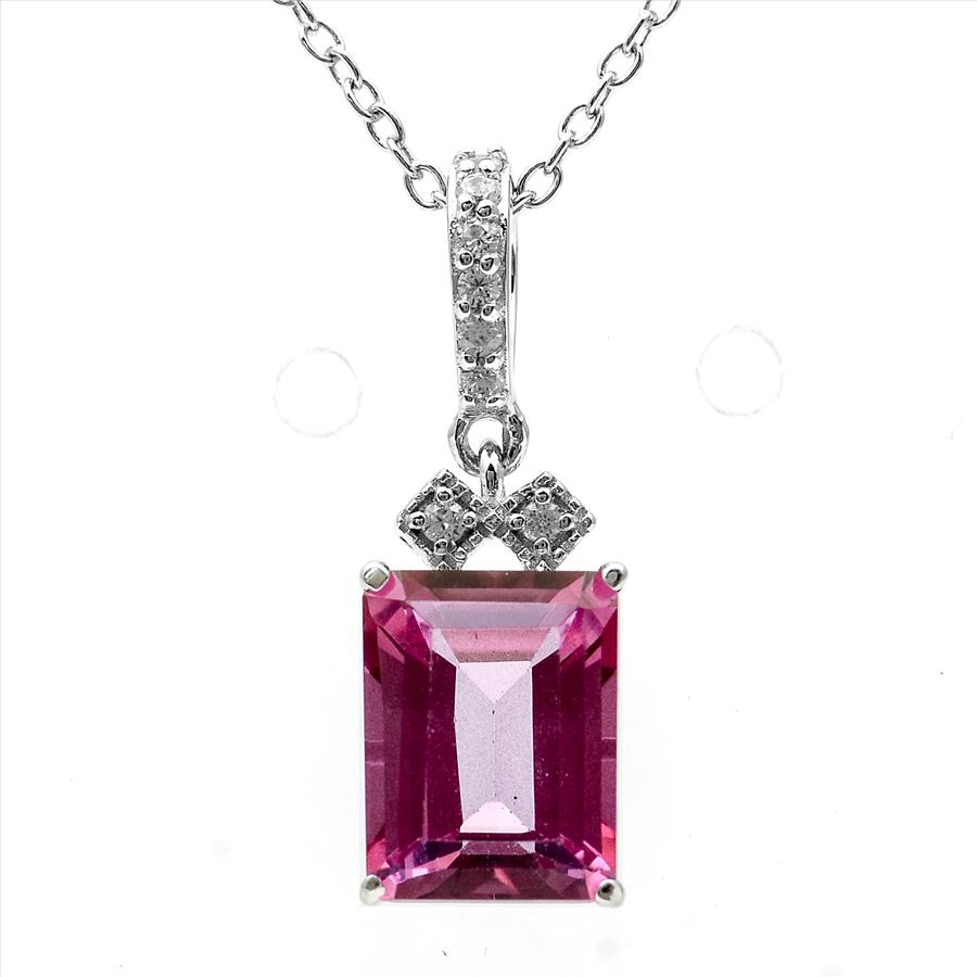 925 Sterling Silver 3.08 Ct Octagon Pink Topaz White Zircon Pendant