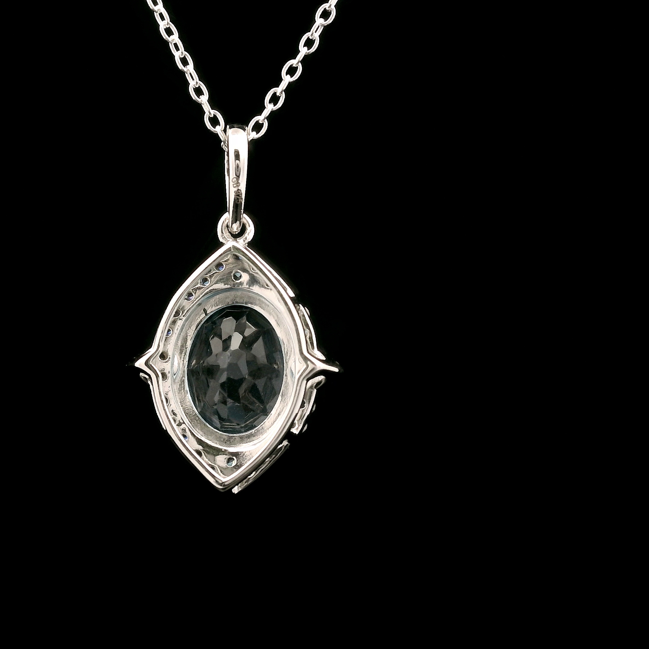 925 Sterling Silver 3.58 Ct Oval Blue Topaz White Zircon Pendant
