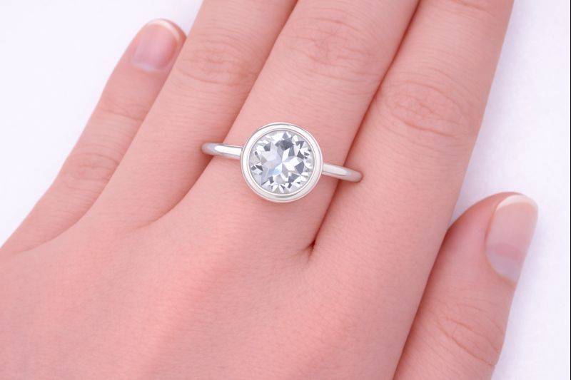 925 Sterling Silver 3.77 Ct Round White Topaz Ring 8.5 US Ring Size
