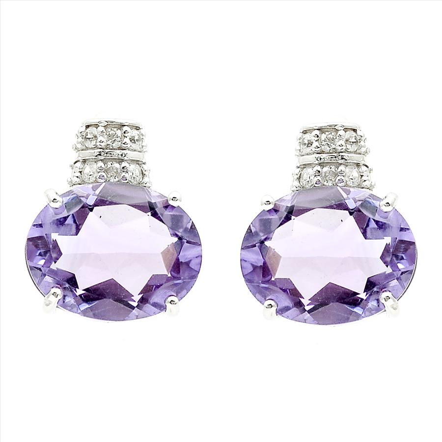 925 Sterling Silver 4.51 Ct Oval Amethyst White Zircon Earrings