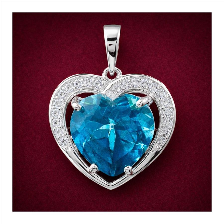 925 Sterling Silver 4.66 Ct Heart Pariba Topaz Cubic Zirconia Pendant
