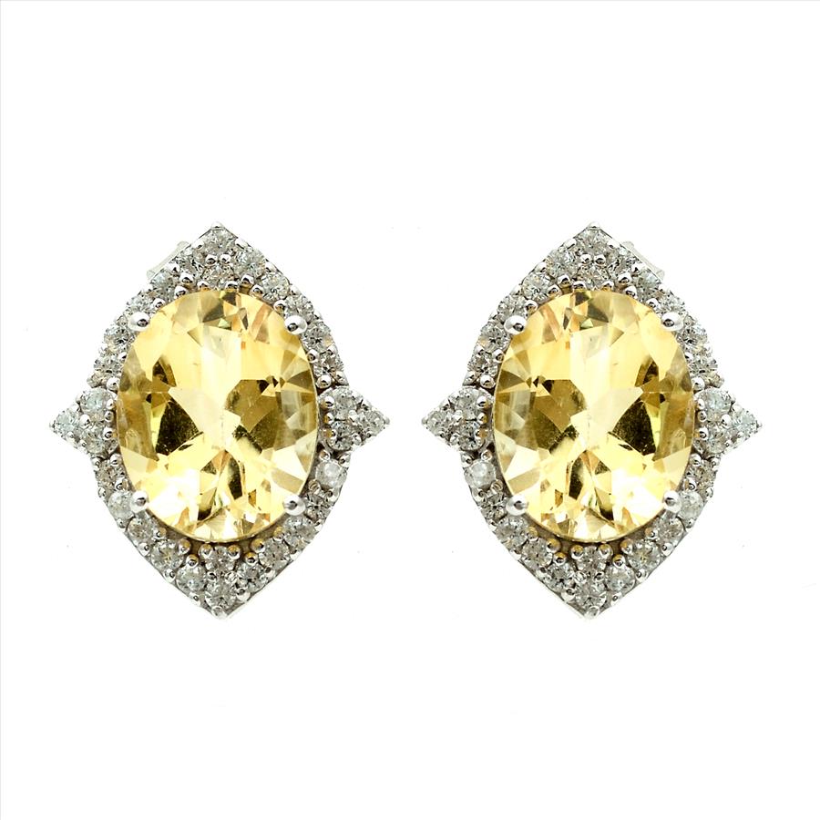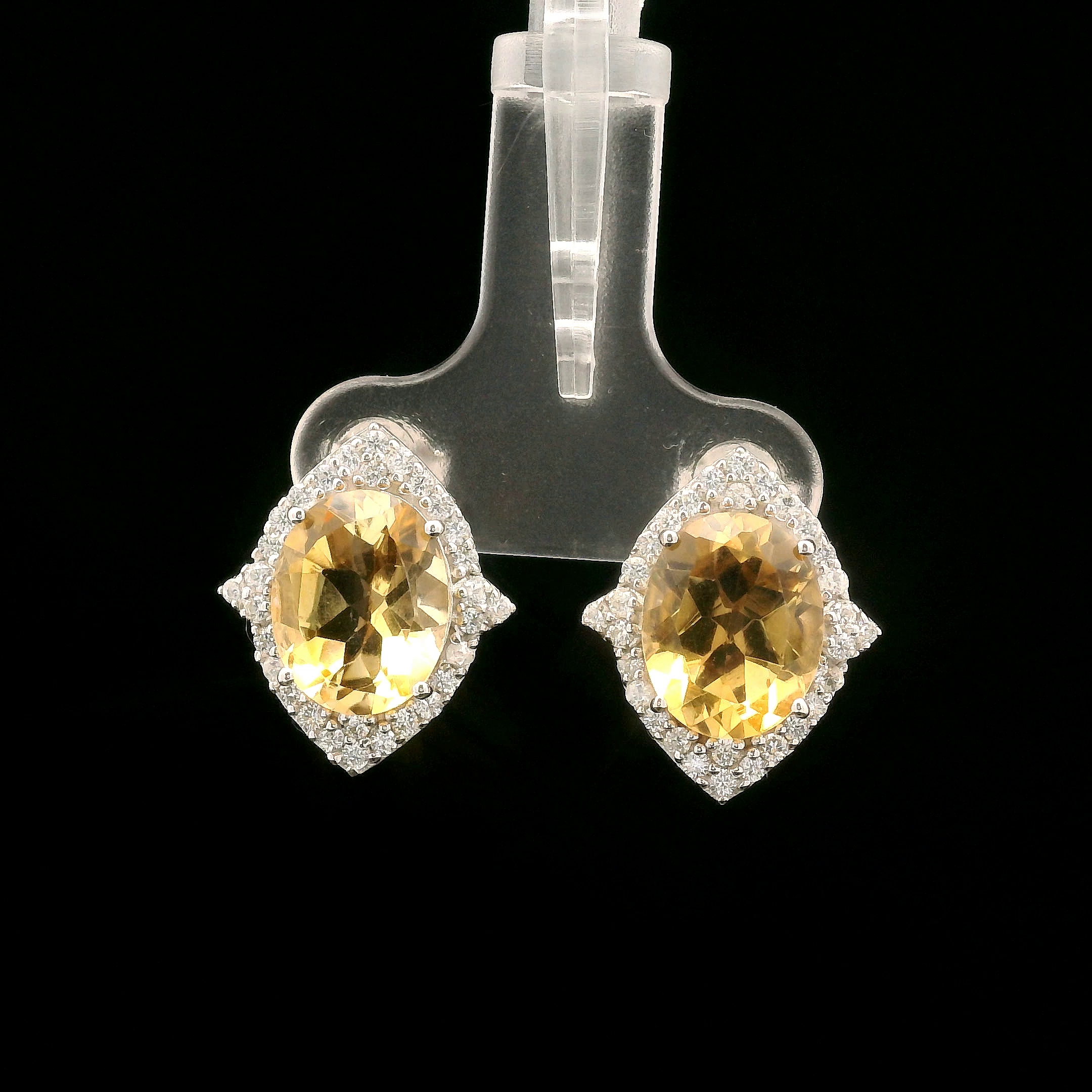 925 Sterling Silver 5.51 Ct Oval Citrine White Zircon Earrings