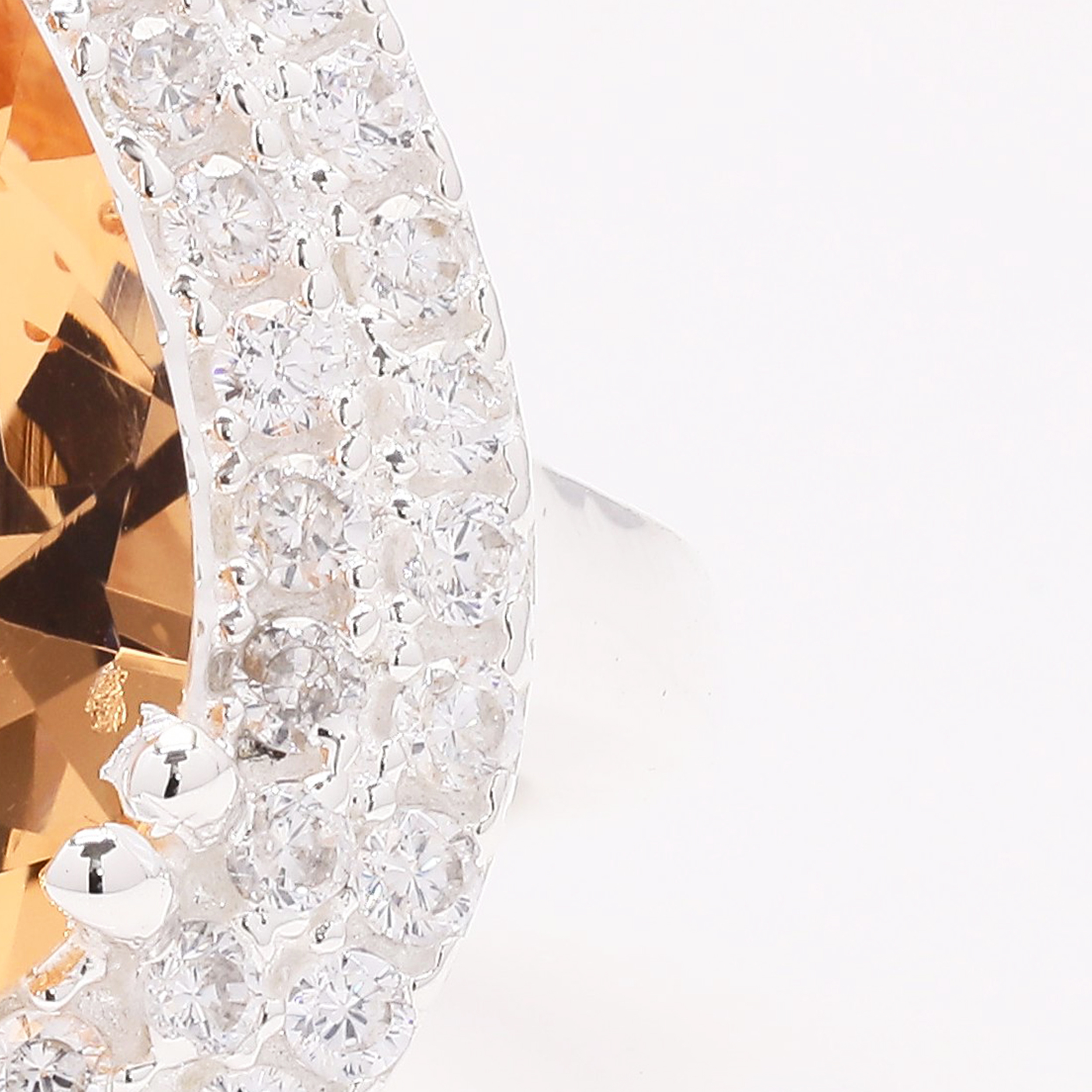 925 Sterling Silver 5.77 Ct Pear Created Morganite Cubic Zirconia Ring 5 US Ring Size