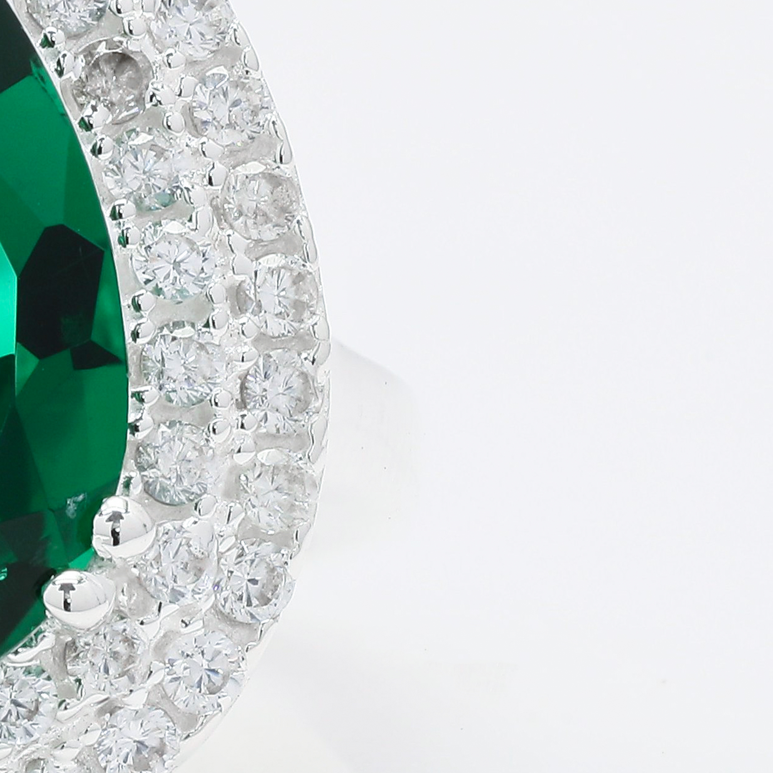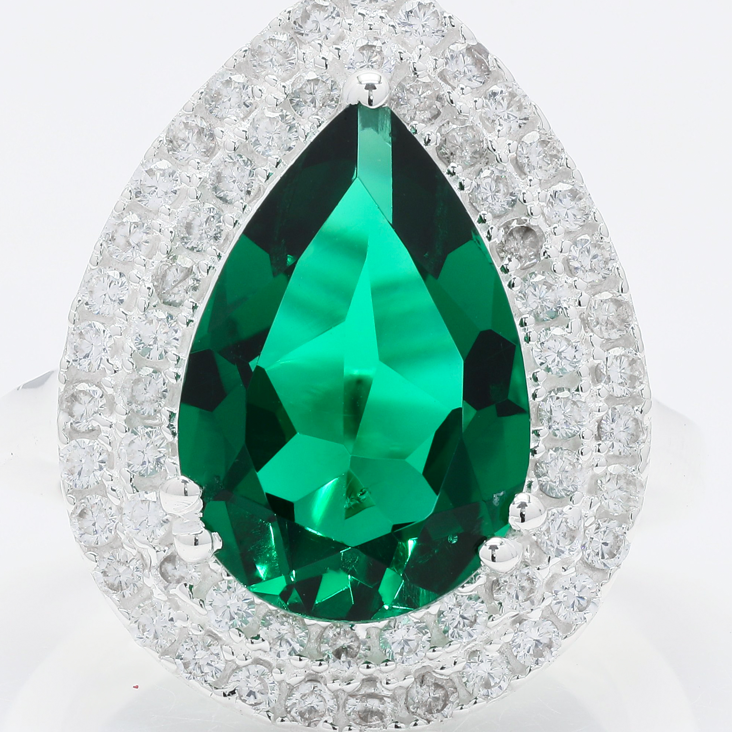 925 Sterling Silver 6.11 Ct Pear Created Emerald Cubic Zirconia Ring 5 US Ring Size