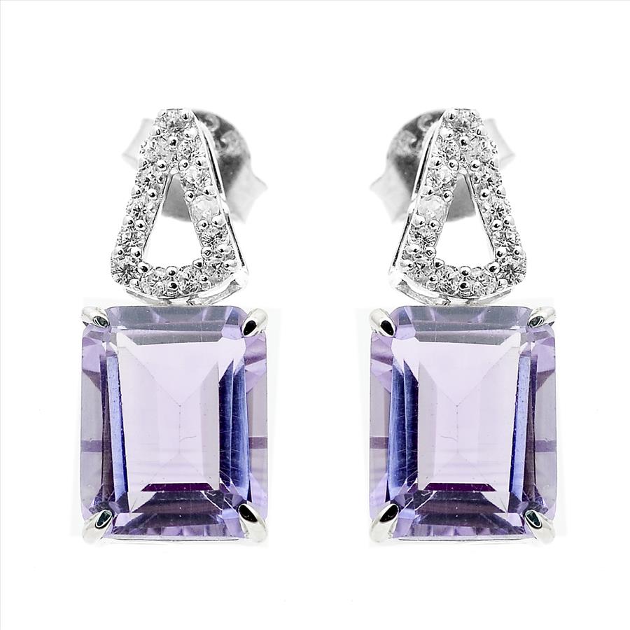 925 Sterling Silver 6.71 Ct Octagon Amethyst White Zircon Earrings