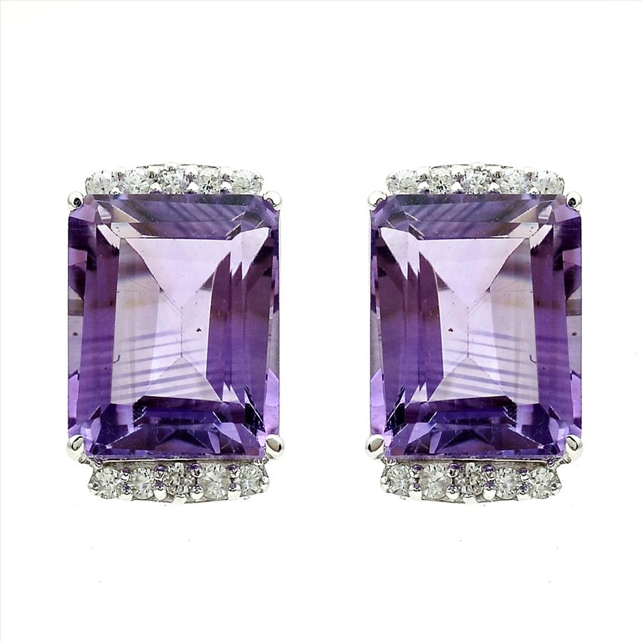 925 Sterling Silver 6.91 Ct Octagon Amethyst White Zircon Earrings