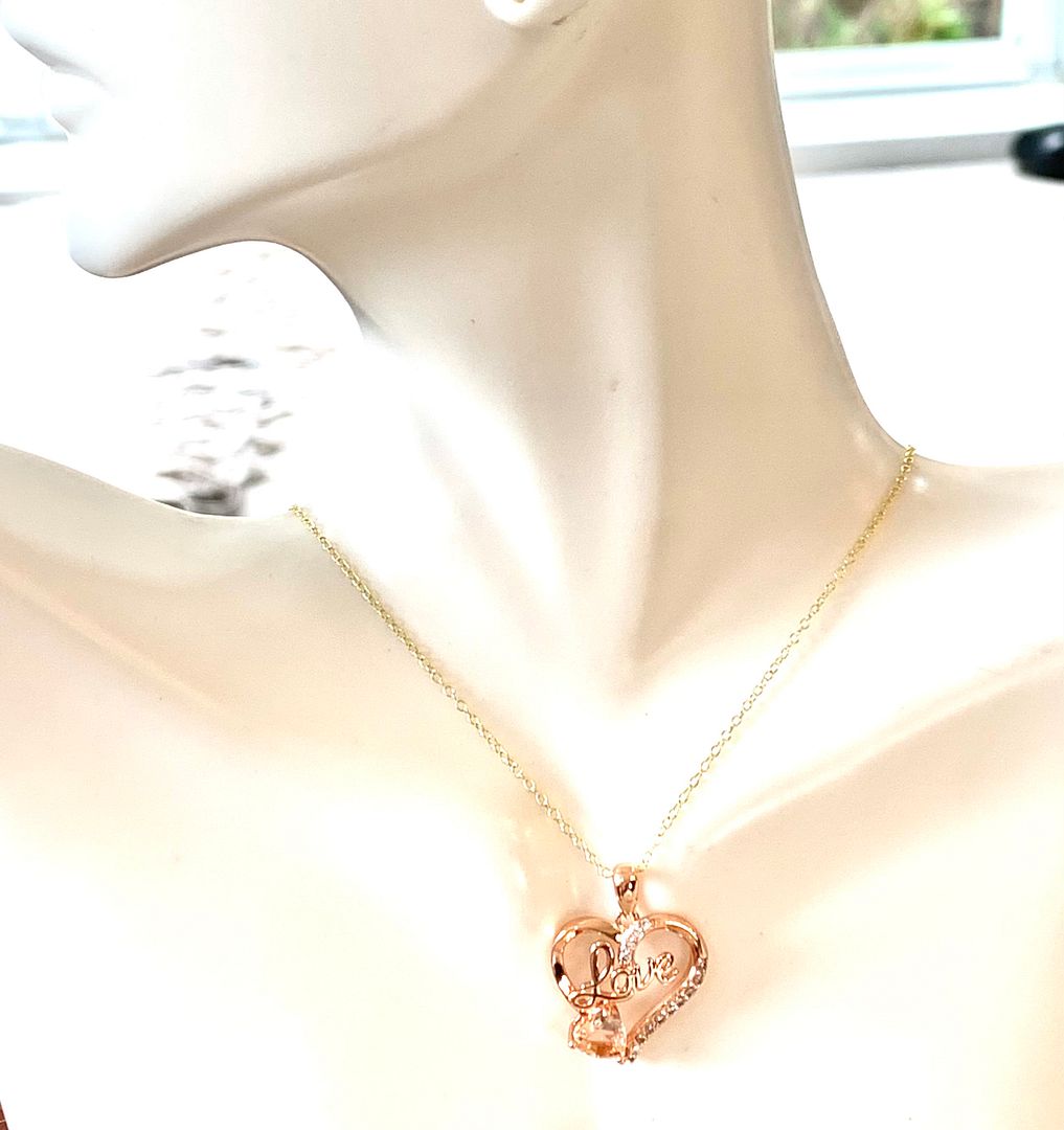 .925 Sterling Silver Chain 1.25ctw Rose Quartz & Diamonique Diamond LOVE Heart Necklace