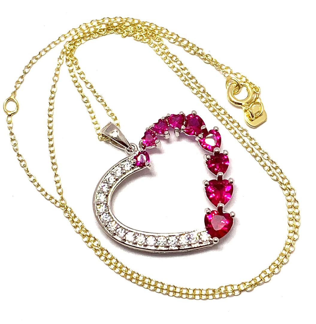 .925 Sterling Silver Chain 2.50ctw Ruby & Diamonique Diamond Heart Necklace