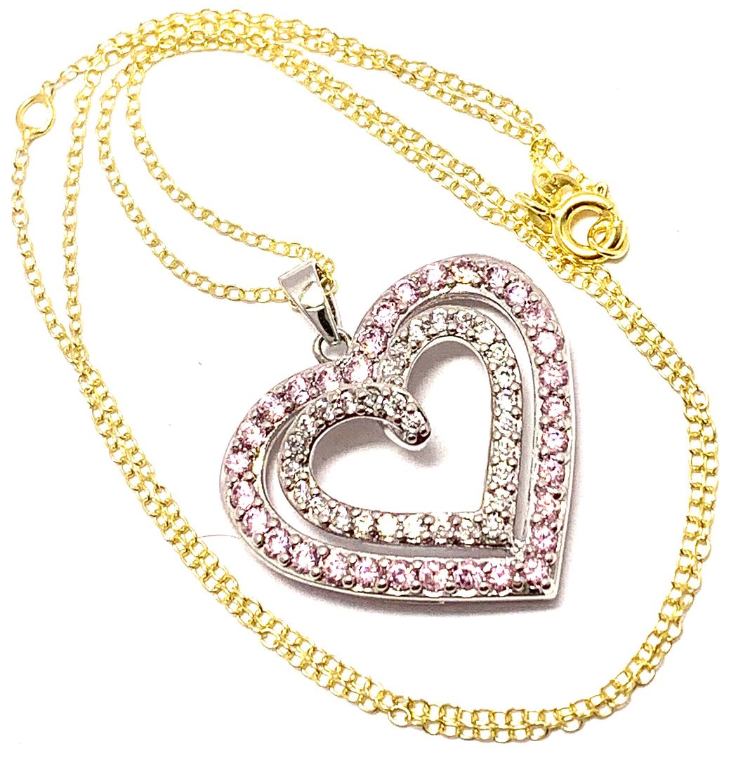 .925 Sterling Silver Chain 3.00ctw Pink Topaz & Diamonique Diamond Heart Necklace