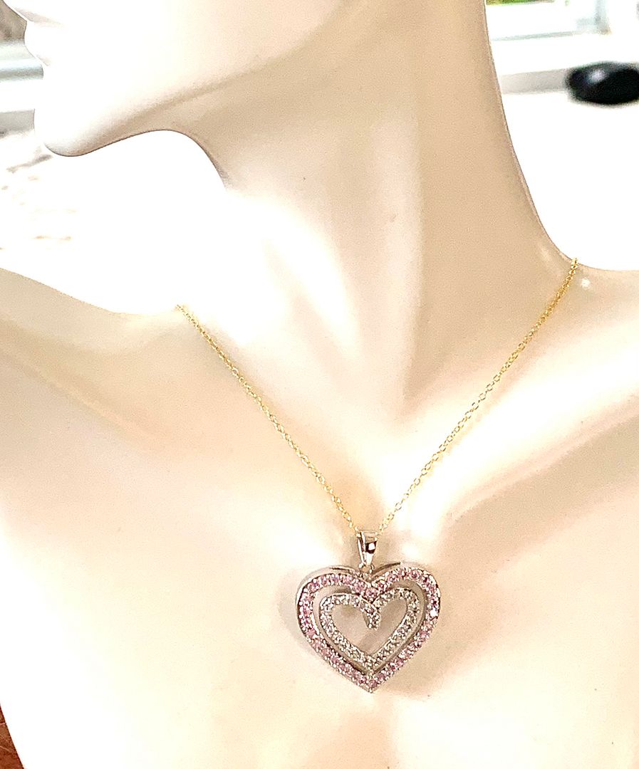 .925 Sterling Silver Chain 3.00ctw Pink Topaz & Diamonique Diamond Heart Necklace