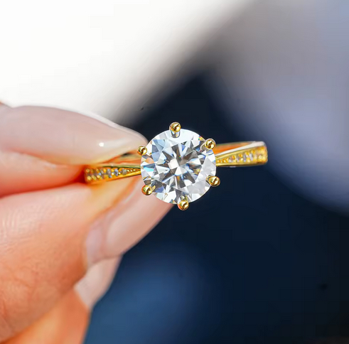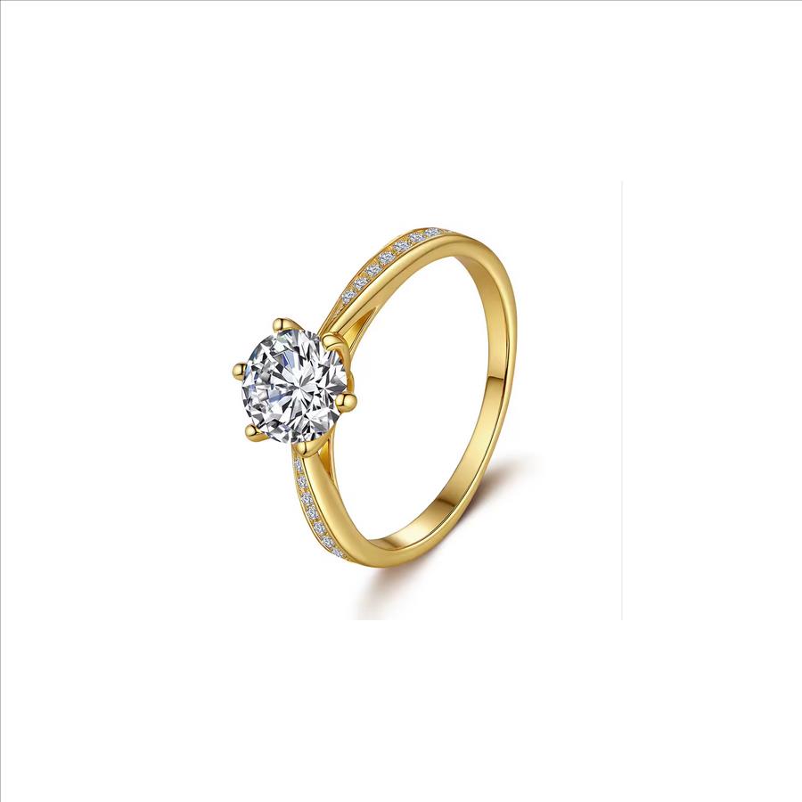 925 Sterling Silver Moissanite 1.0ct 18K Gold Plated Solitaire Ring