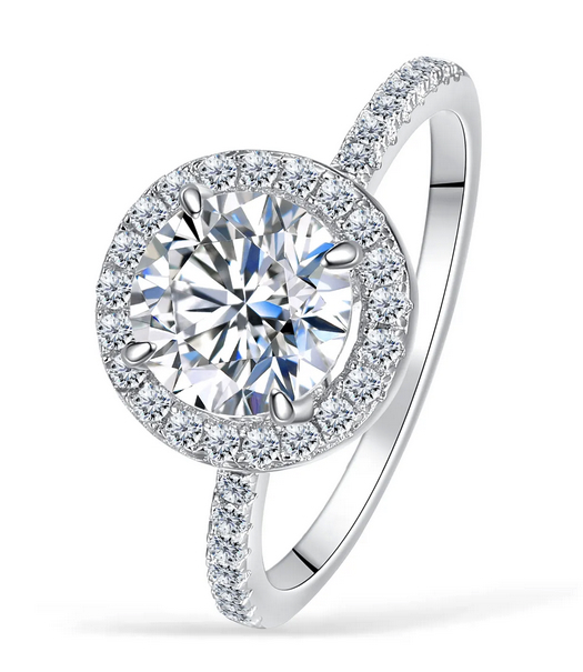 925S Sterling Silver Moissanite 1.5ct Halo Chanel Ring