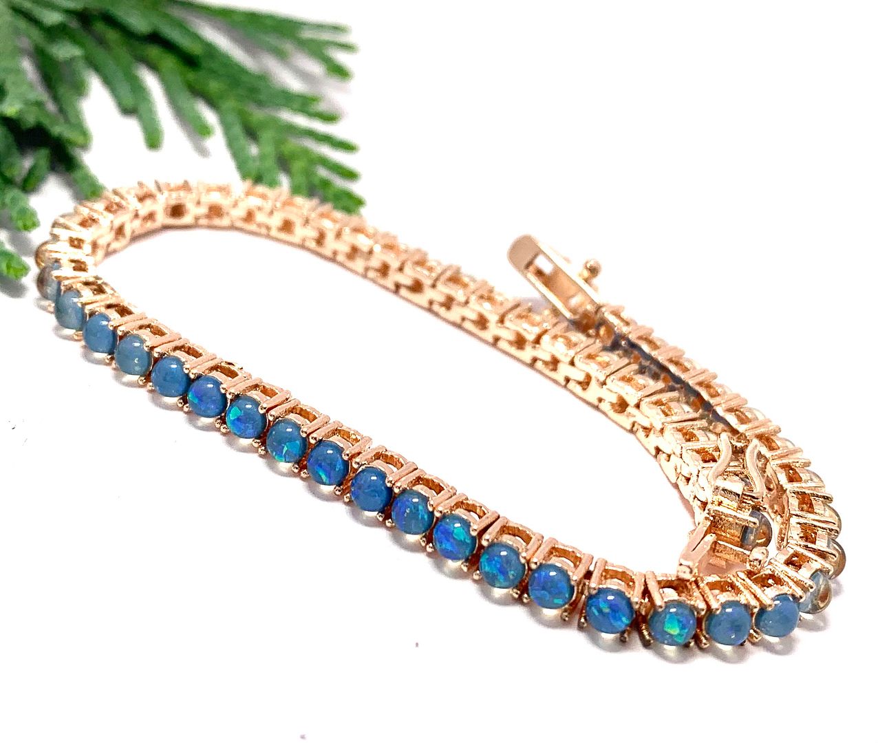 $99 Retail 5.00ctw Blue Opal Tennis Bracelet 7” Long