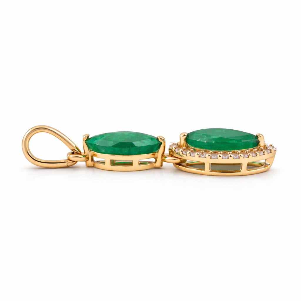 9K Gold 1.03 Ct Marquise Emerald Pendant