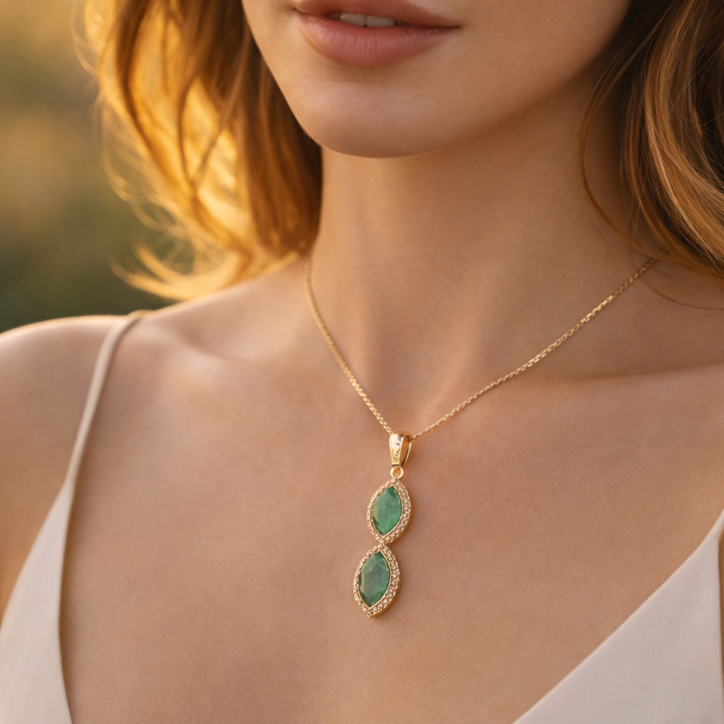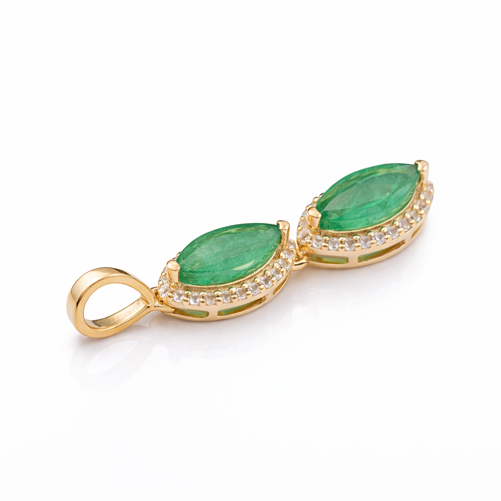9K Gold 1.21 Ct Marquise Emerald Pendant