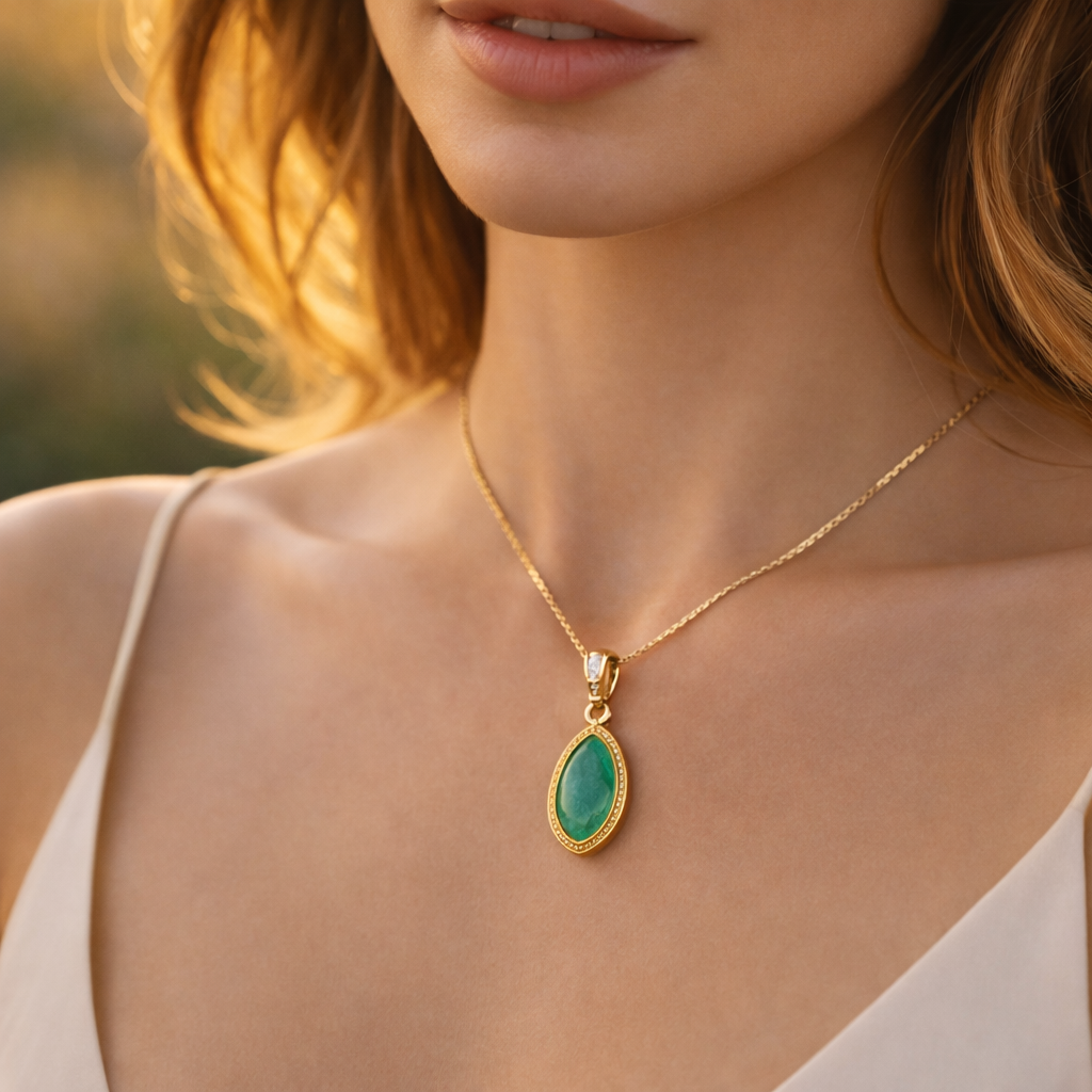 9K Gold 1.58 Ct Pear Emerald Pendant